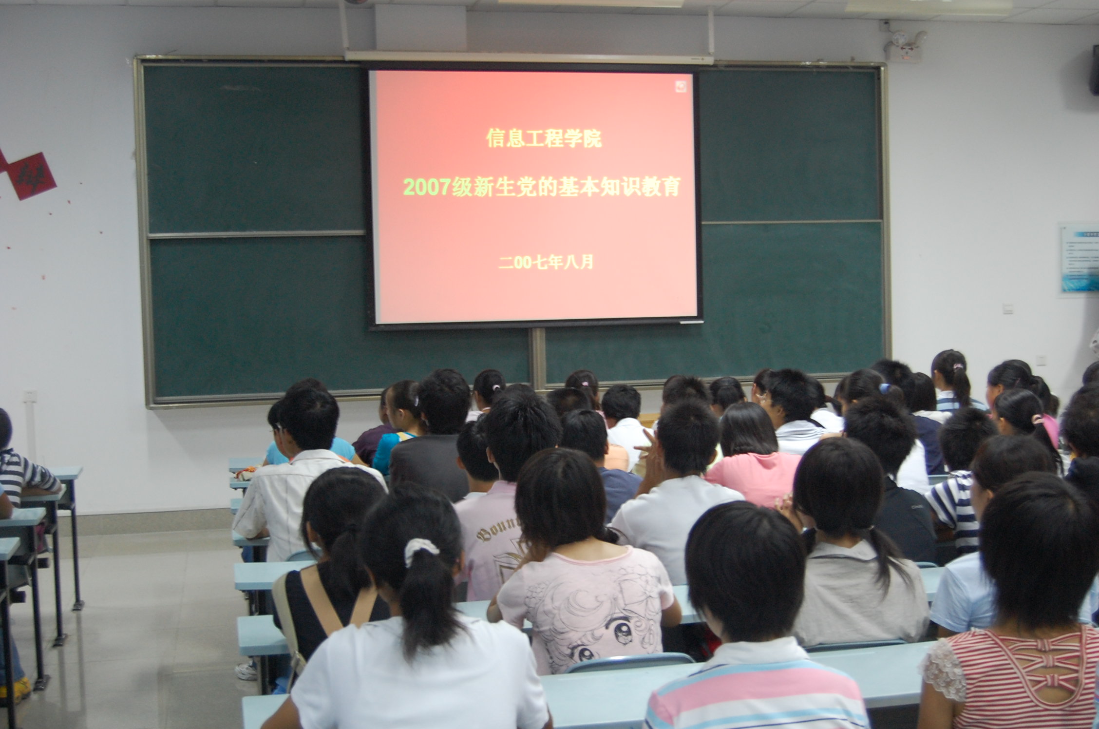 8月28日上午,Happy漫画 党委对2007级新同学进行了党的基本知识教育。学院党务秘书刘桂玲老师针对党的性质、指导思想、基本路线及党的宗旨等作了介绍,并对大学生如何积极向党组织靠、如何端正入党动机、如何写入党申请书等内容作了详细讲解。