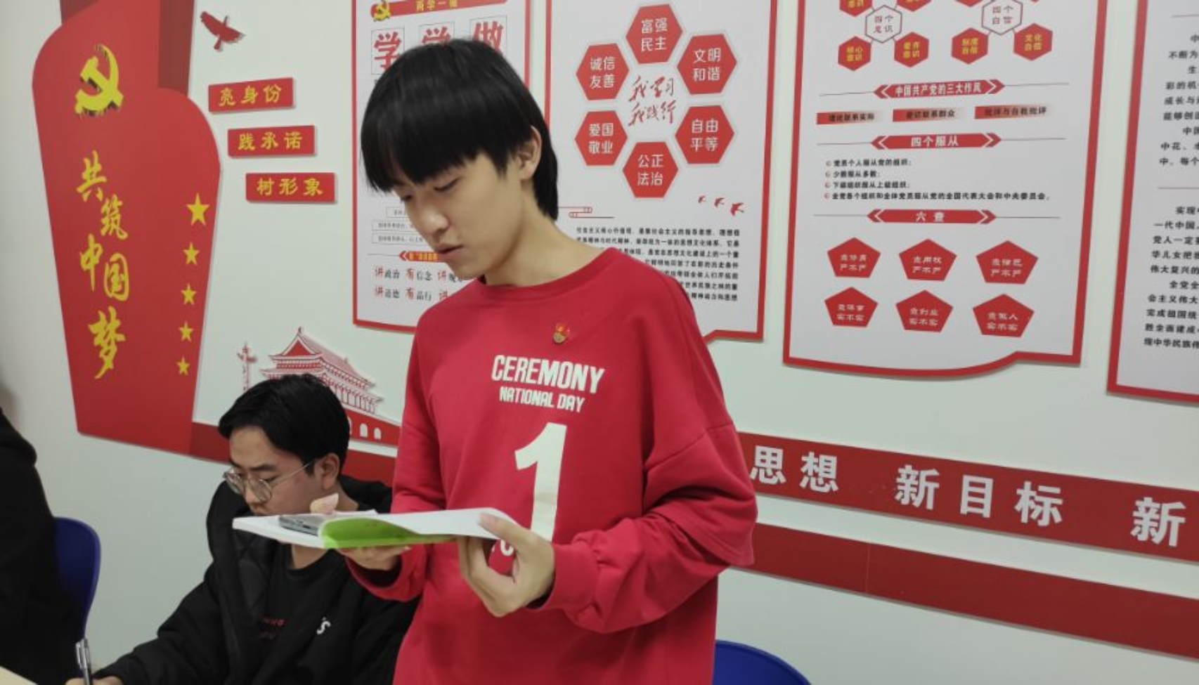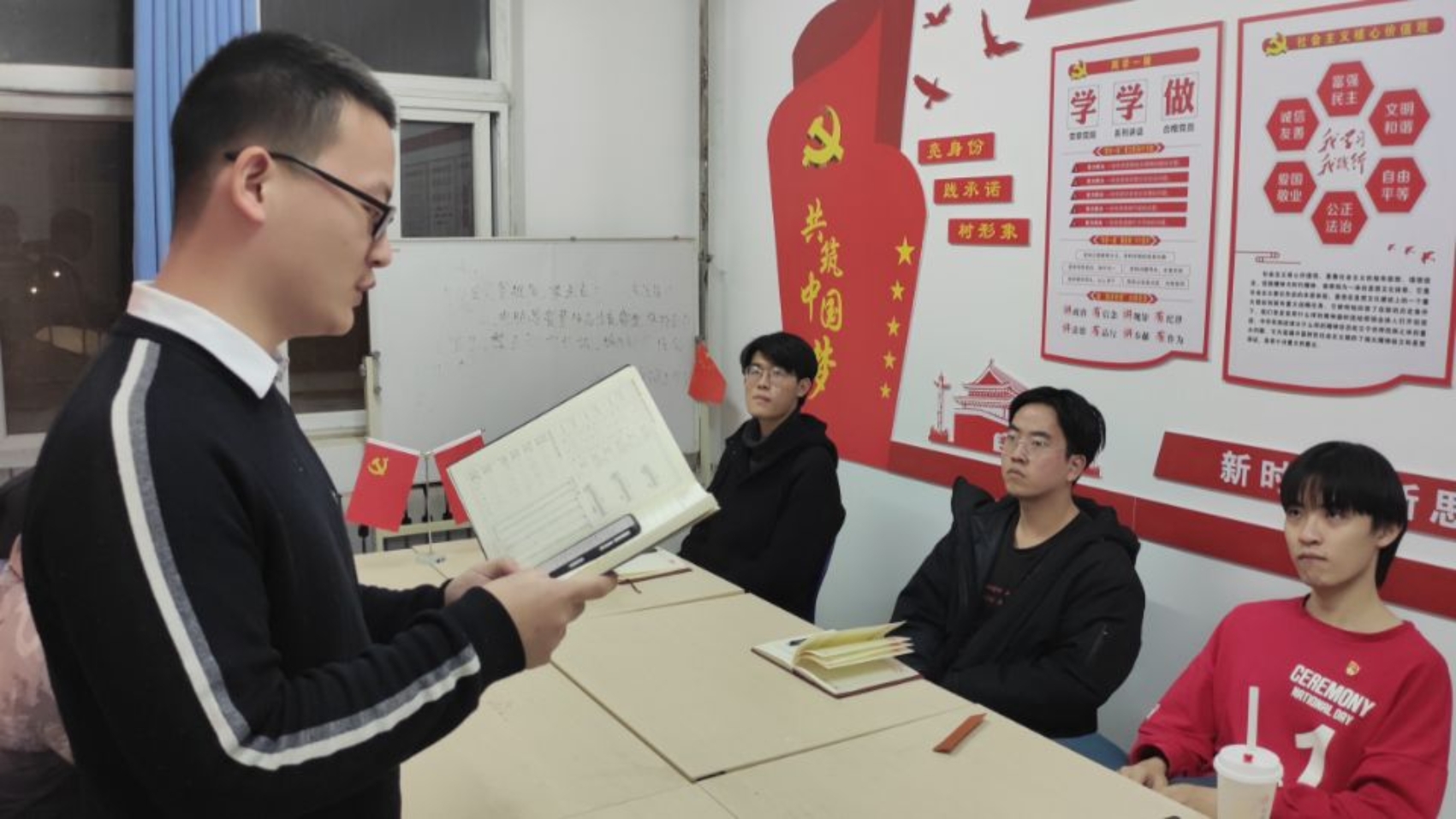 王晓博同志提出了“勿忘昨天的苦难辉煌,无愧今天的使命担当,不负明天的伟大梦想”的动员令;韩家齐同志谈到开拓创新,为中国科技的发展做出自己的努力;张云鹏同志与张云皓同志谈论了十九届六中全会的意义,十九届六中全会在赓续传承中客观总结“新民主主义革命时期”“社会主义革命和建设时期”“改革开放和社会主义现代化建设新时期”“中国特色社会主义进入新时代”四个时期主要任务,在赓续传承中实现了马克思主义中国化的三次飞跃;刘同海同志提出要不断砥砺奋进,要继续发扬共产党人优良传统;李永飞同学提出要守好共产党人的初心使命,为实现更加巨大的成就努力;邓星宇同志简单分享了党的历史,引用了习近平总书记:“走好路,就要不忘来路”号召大家继续艰苦奋斗。同志们在交流中得到了提升。