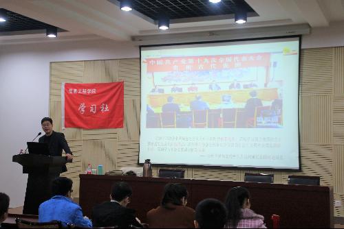 同时,殷老师还为同学们仔细地讲解了党的十九大的重要新目标的具体表达和重要意义。党的十九大,是在决胜全面建成小康社会、开启全面建设社会主义现代化国家新征程的关键时期召开。在解决人民温饱问题、人民生活水平总体上达到小康水平这两个目标已经提前实现的基础上,党中央综合分析国际国内形势和我国发展条件提出了新的目标要求,完整勾画了我国社会主义现代化建设的时间表、路线图。