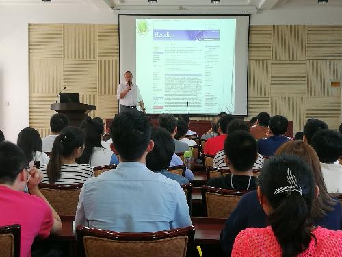 院长蔡骋发表了热情洋溢的讲话,他首先代表学院党政领导和全体师生员工向2017级研究生新生表示衷心的祝贺和热烈的欢迎,接着又为全体新生做了精彩的迎新致辞,从学校资源、导师资源、社会资源和个人成长四个方面着手,希望研究生充分利用学校的教育平台,做好规划、目标明确、严谨诚信、实事求是、开拓创新、不断进步。