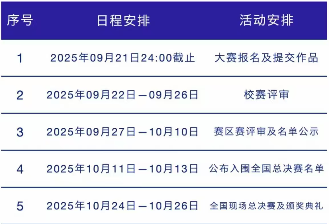 2025年整体赛事工作部署,赛程分为:校赛、赛区赛(原省赛)及全国总决赛三个阶段。