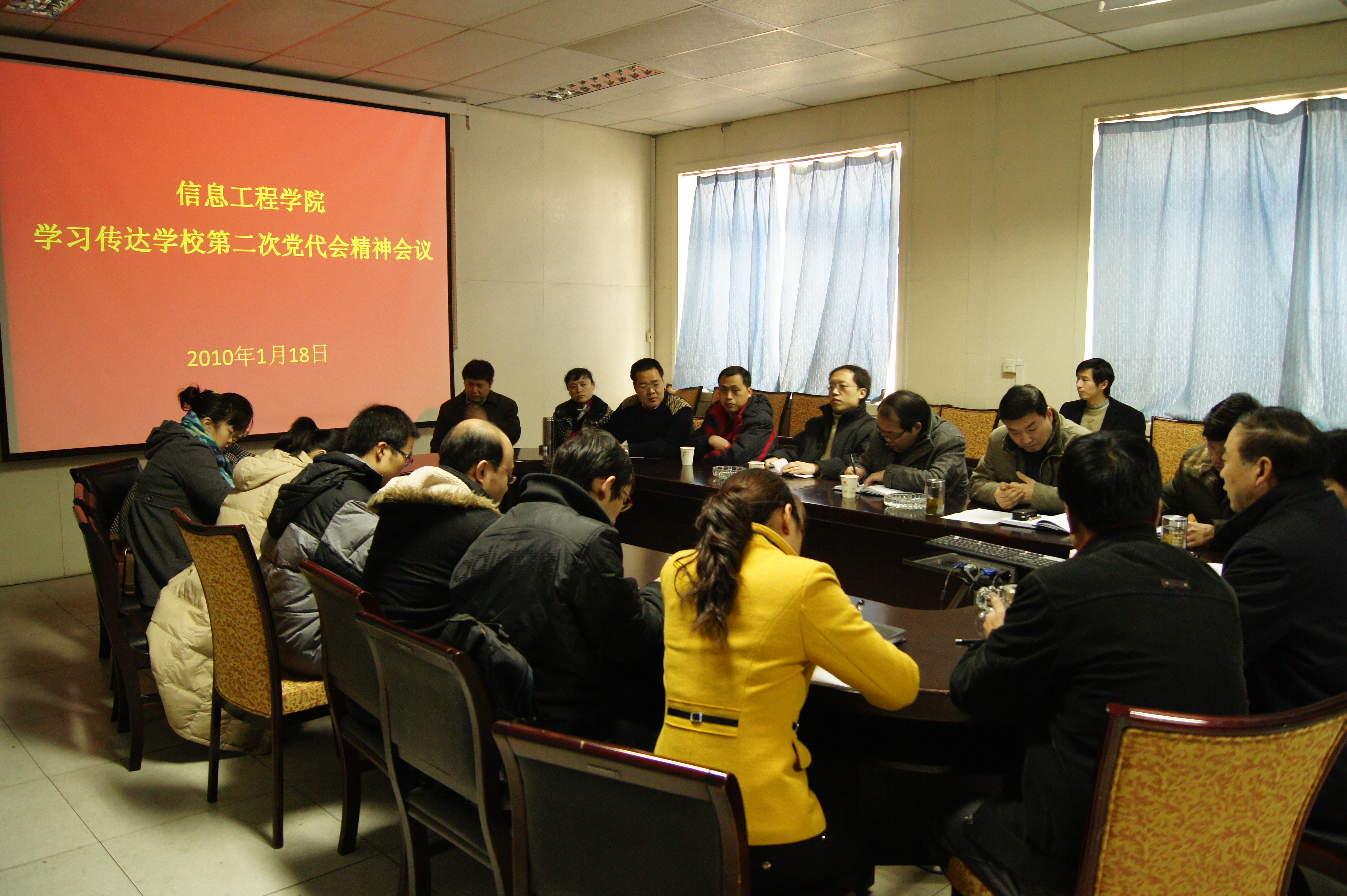 1月18日下午,学院在一层会议室召开学校第二次党代会精神学习会,全体院领导、党委委员、系部主任、党支部书记和办公室工作人员参加会议,会议由学院党委副书记何卫军同志主持。