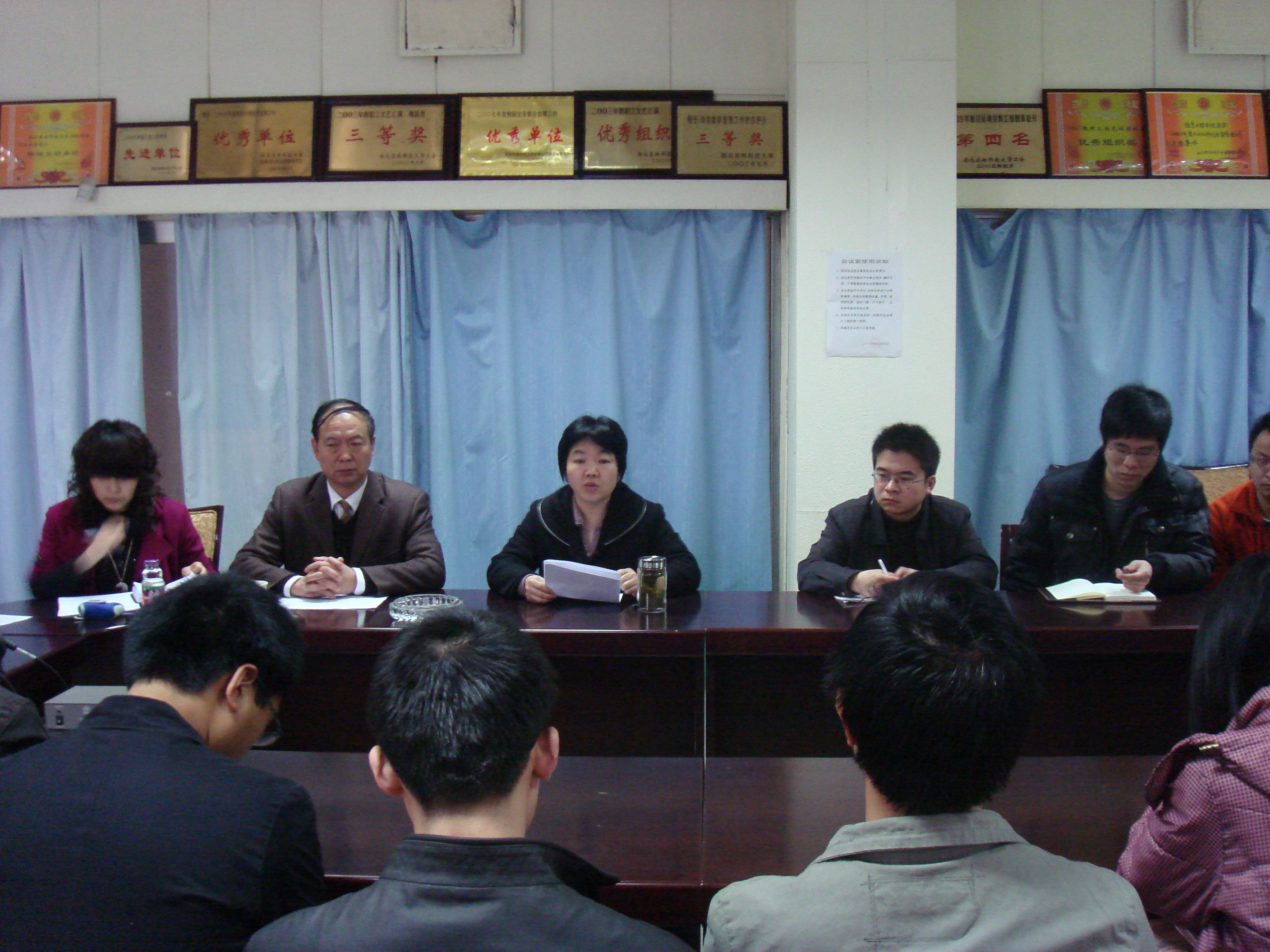 在学院一层会议室召开2010届毕业研究生就业工作专题会议,会议由学院主持工作副院长李书琴教授主持,学院党委书记樊世明出席了会议,研究生秘书范芳娟及所有在校的2010届毕业研究生参加了会议。