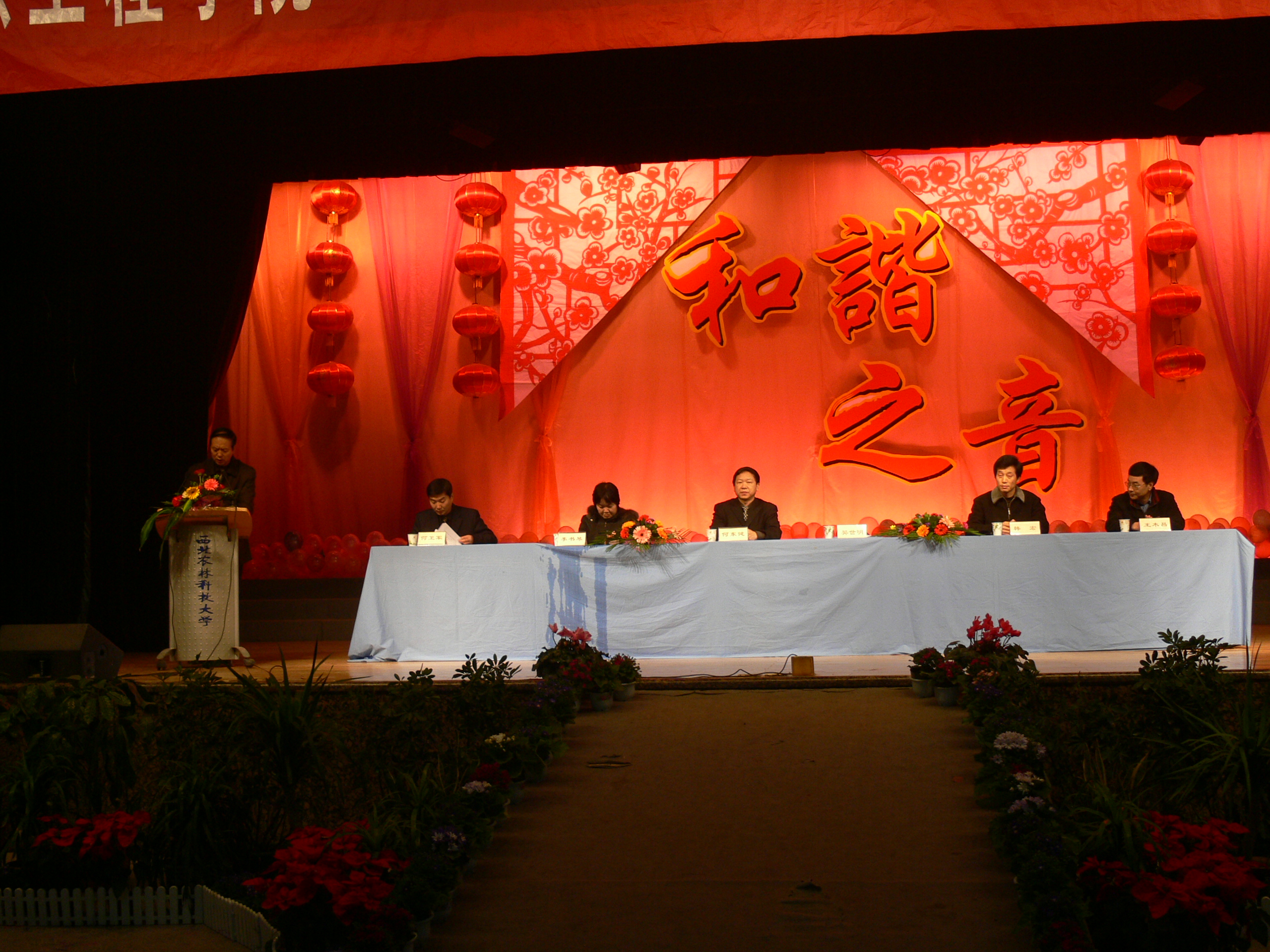 晚会开始前,学院对一年来涌现出的先进集体和个人进行了表彰。表彰大会由何卫军副书记主持,樊世明书记分别宣读了《学院关于表彰2007年度教工、学生先进集体和个人的决定》,并希望受表彰的先进集体和个人再接再厉,戒骄戒躁,不断进取,在新的一年里取得更好的成绩,号召大家向受表彰的先进集体和个人学习,向榜样看齐,共同进步。全体院领导为受表彰的集体和个人颁发了荣誉证书和奖品。颁奖结束后,院长何东健教授代表学院党政领导向全院师生员工发表了热情洋溢的新年致辞,他回顾了学院一年来各项工作取得的辉煌成绩,对全院师生员工对学院所做的贡献表示最衷心的感谢,并介绍了学院2008年各项工作要点,最后何院长给大家送上了新年的美好祝福和问候。