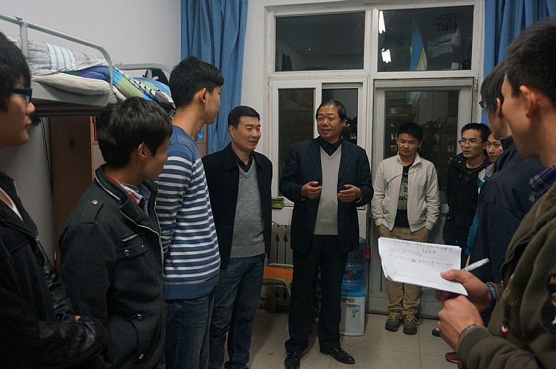 为加强学生宿舍管理,了解学生“文明宿舍创建活动”开展情况,11月19日晚,Happy漫画 党委书记宋西德、党委副书记何卫军、学工秘书王淑珍老师,在辅导员的陪同下深入学生宿舍进行检查。