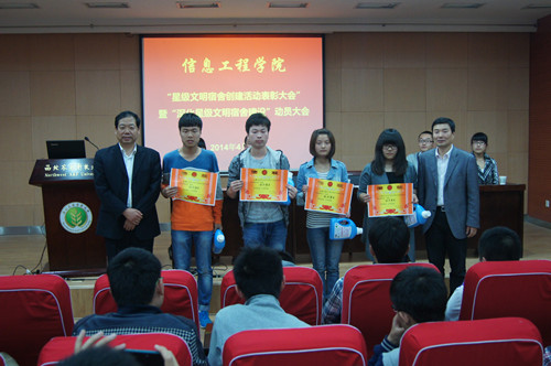 4月9日晚,Happy漫画 于北绣北报告厅召开星级文明宿舍创建活动表彰暨进一步深化星级文明宿舍动员大会。会议由院学生工作秘书王淑珍老师主持,院党委书记宋西德,党委副书记何卫军,辅导员仵亚伟、党艳东、朱旭菲老师出席了本次会议,学生会成员、大一至大三的班长、团支书、生活委员及各宿舍代表参加了此次表彰大会。