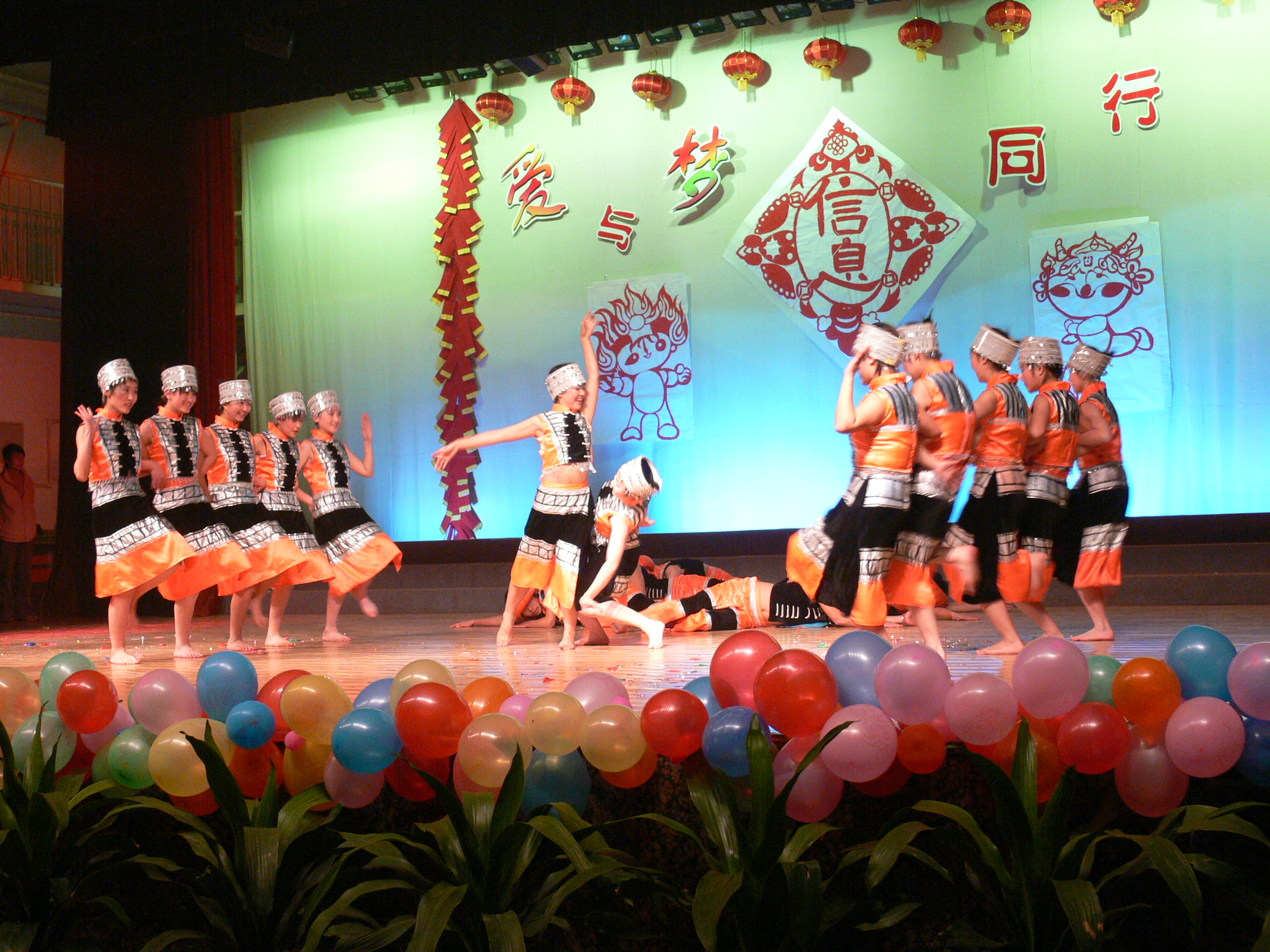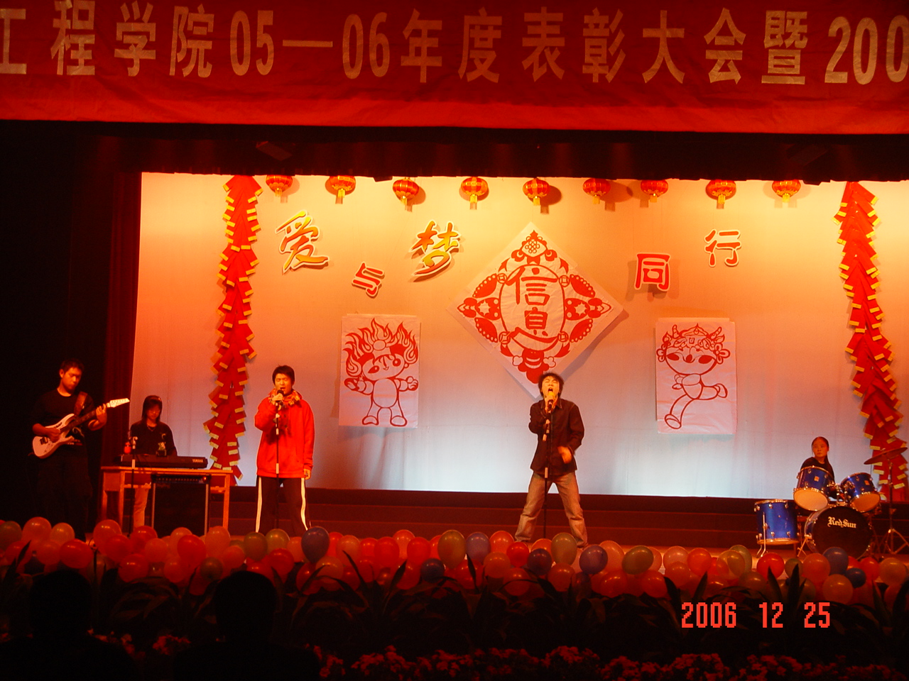 在激情四射的音乐中,Happy漫画 的轮滑爱好者们为全院师生展示了他们精彩而娴熟的轮滑技巧;Happy漫画 自己乐队的一首《超越自己》,调动了师生的热情;现代版的《唐伯虎点秋香》的幽默和风趣,带来了阵阵笑语和掌声;舞蹈《奔驰在草原上》让大家领略到大草原的豪迈与奔放并把晚会推向了高潮。最后晚会在《就在今天》的歌声中拉下帷幕,取得圆满成功。