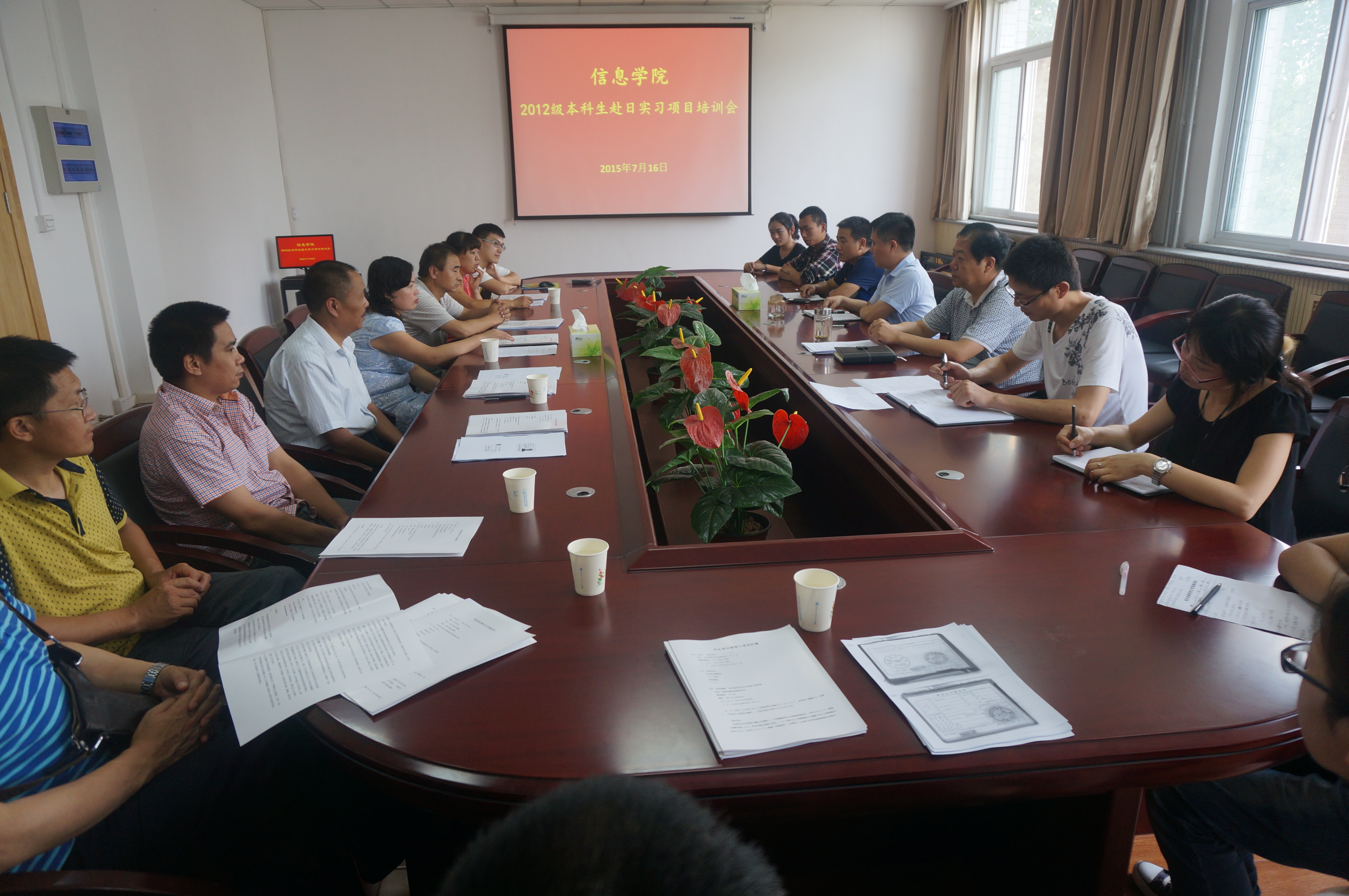 经过前期的日语培训学习,日语笔试,日方企业现场面试与远程面试相结合,初次选拔李占蕊、李玉、王莹、周鑫恺、高中建、李超等6名同学于近期办理赴日相关手续,为了保证2012级本科生赴日实习项目顺利进行,Happy漫画 于7月16日下午3:00在学院216会议室召开赴日实习项目培训会,学院书记宋西德、主管教学副院长张阳、教务处学籍科负责人安福定以及学院外事、教学等相关负责人、赴日学生及学生家长参加了会议。