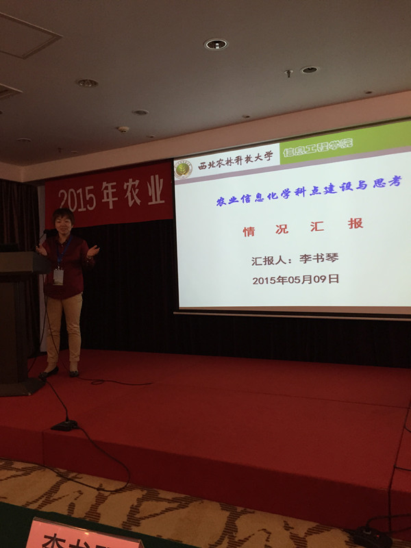 5月8一9日,李书琴院长应邀参加在南京农业大学召开的“2015年农业信息化学科建设暨人才培养研讨会”,并代表学校在主会场做了题为“农业信息化专业学位硕士学科点建设与思考”的专题报告。