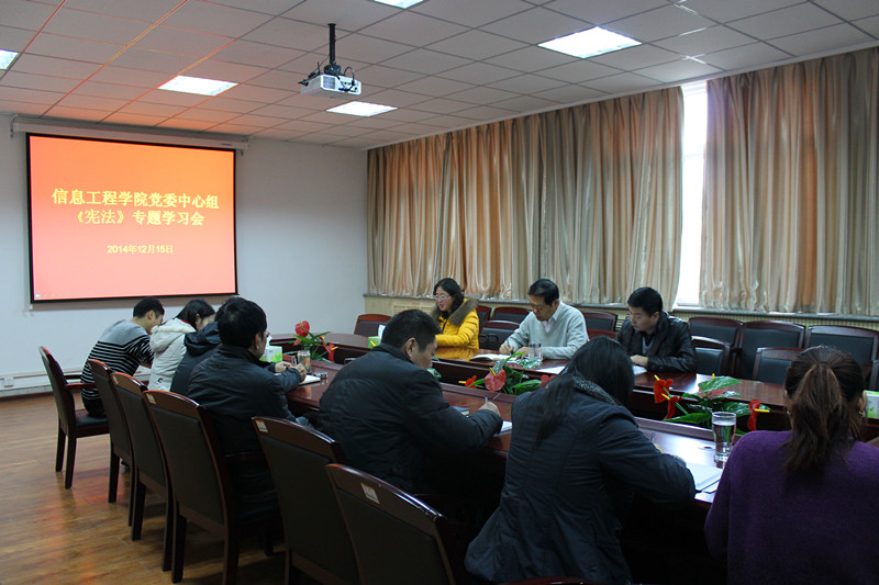 为贯彻落实党的十八届四中全会精神,全面推进依法治国进程,集中学习宪法和习近平总书记有关讲话精神,增强Happy漫画 教师的宪法观念,12月15日上午,Happy漫画 党委中心组在Happy漫画 216会议室集中开展《宪法》专题学习。院党委书记宋西德主持学习会,学院副书记何卫军、副院长来智勇及党委中心组教师参加此次学习会。