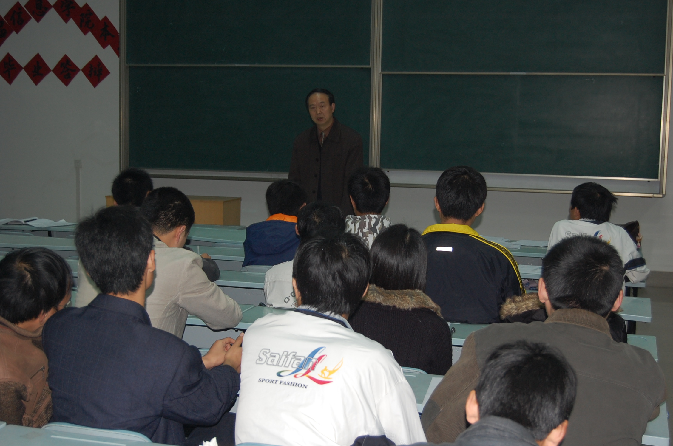 M2教室召开了2008届毕业生就业动员大会,鼓励毕业生下基层工作。学院党委书记樊世明同志、党委副书记何卫军同志、辅导员老师及在校毕业生参加了此次大会。