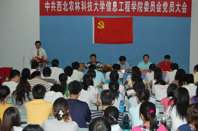 召开全体党员大会,选举樊世明、何东健、韩宏、刘桂玲、王木昌、何卫军、任国霞为新一届党委委员。校党委常委李华副校长、党委组织部郑英宁副部长亲自到会指导大会选举工作。会议由学院党委书记樊世明同志主持。