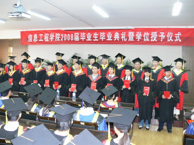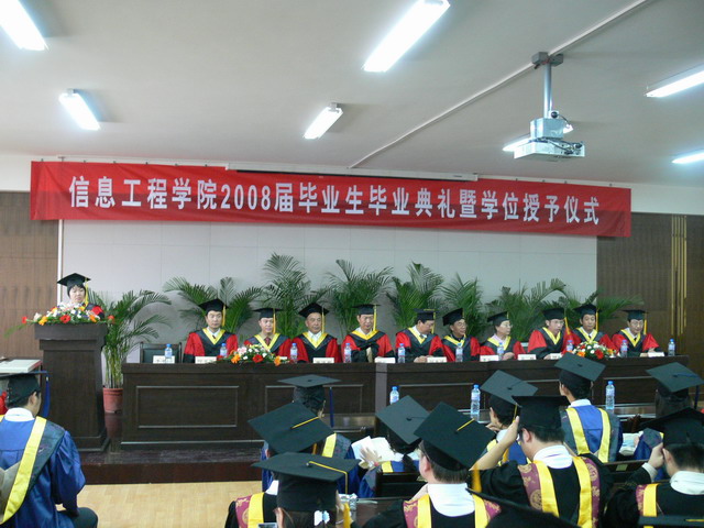 2008届毕业生毕业典礼暨学位授予仪式在机电学院三层报告厅举行。全体院领导、部分毕业生指导教师代表、部分学生家长代表、全体2008届毕业生和部分低年级学生代表参加了毕业典礼暨学位授予仪式。