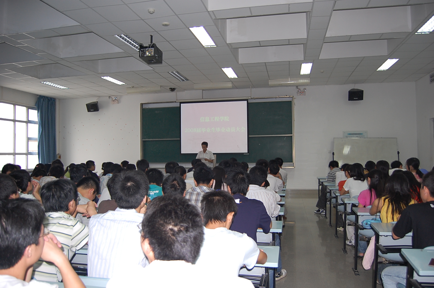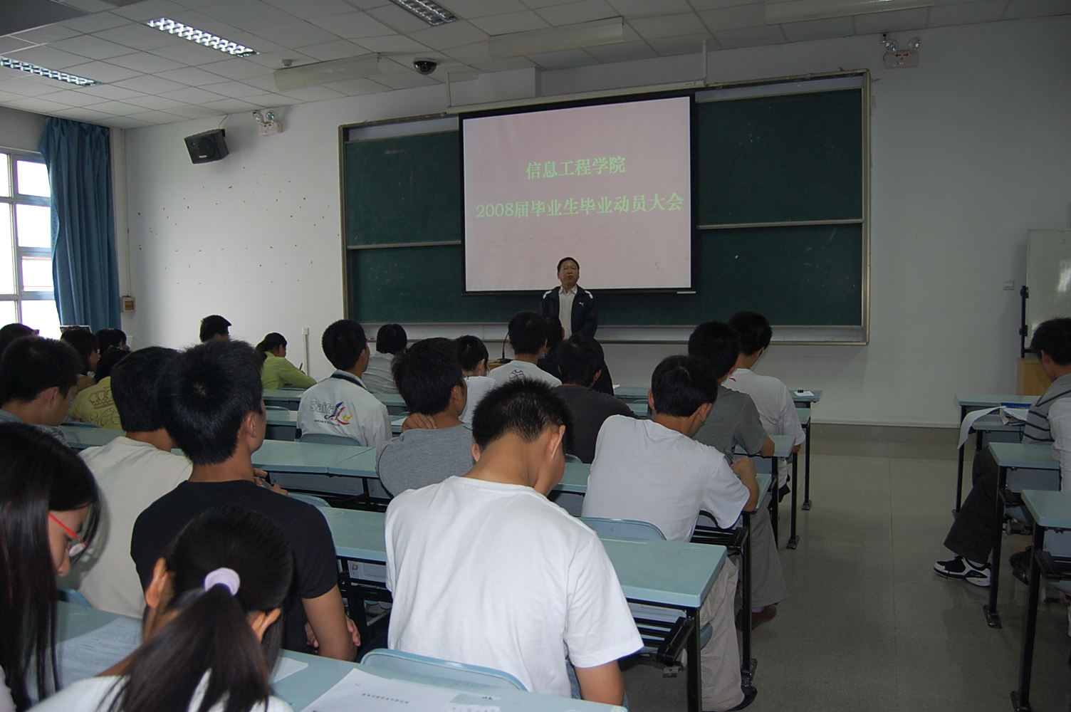M1教室召开了学院2008届毕业生毕业动员大会,部分学院领导、综合办公室同志以及 2008届全体毕业生参加了大会。大会由学工办秘书陶波同志主持。
