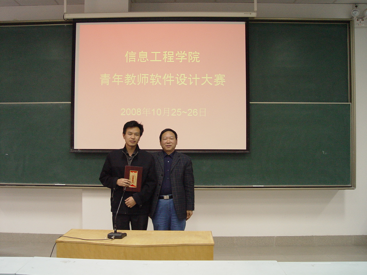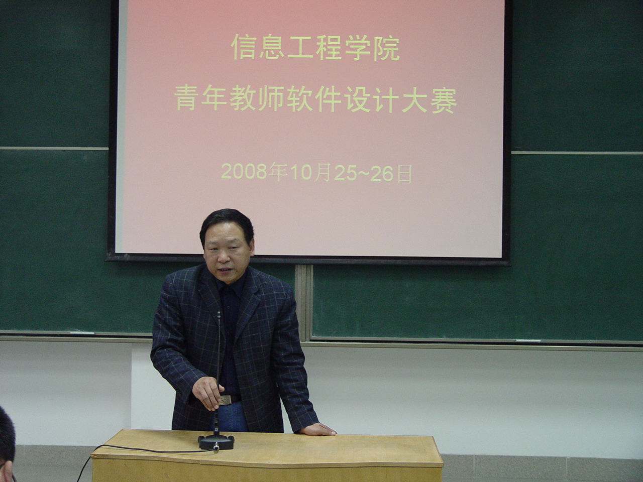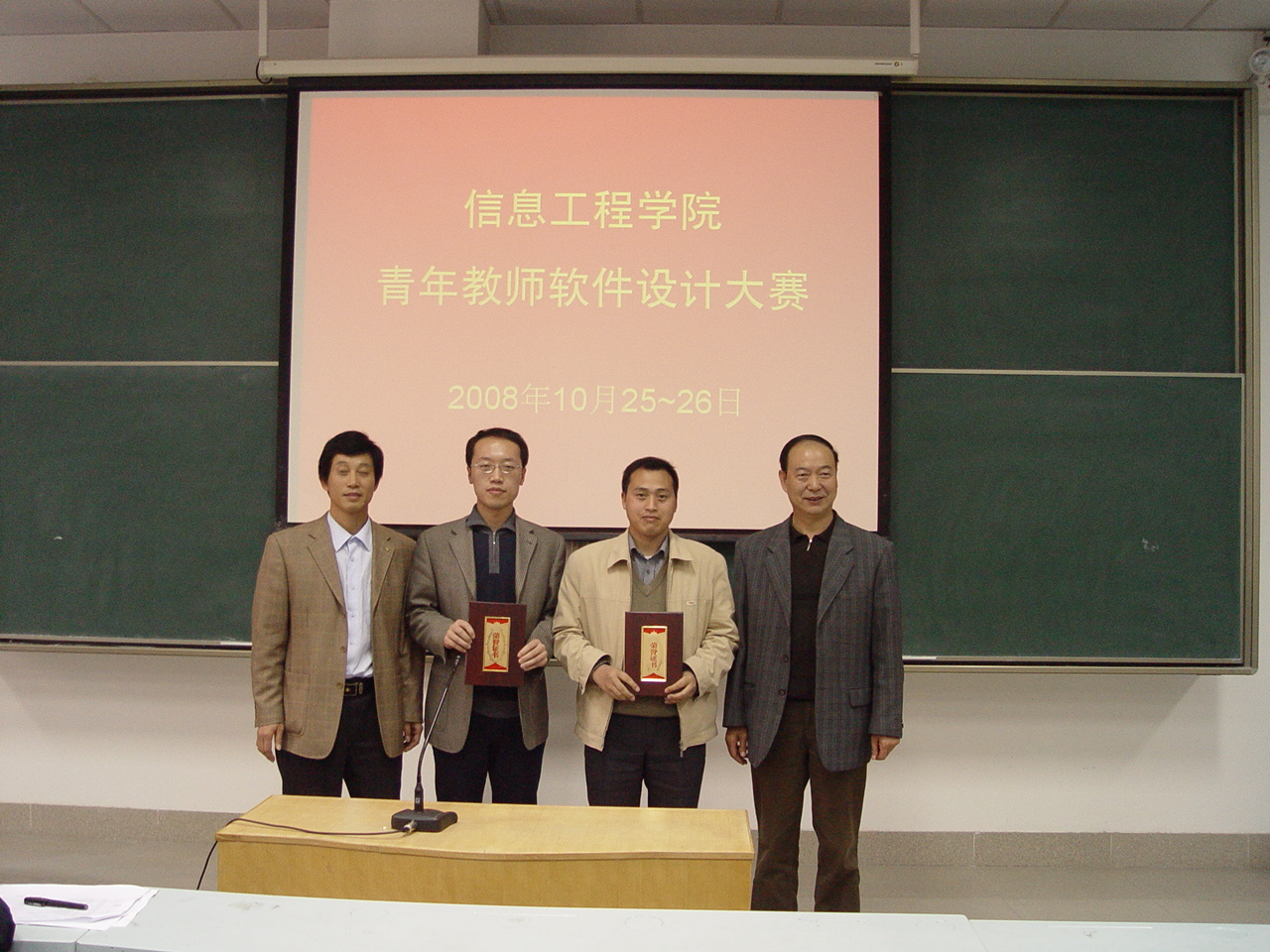 2008年青年教师软件设计大赛在多媒体教室2举办。大赛由教学副院长李书琴教授主持,院长何东健教授、书记樊世明研究员、副院长李书琴教授、副院长韩宏副教授、软件工程系主任张阳老师、控制系主任张建锋老师、科学系主任耿楠老师、信管系主任任国霞老师、基础部主任陈勇老师共9名老师担任评委,全院35名35岁以下青年教师参加了本次大赛。