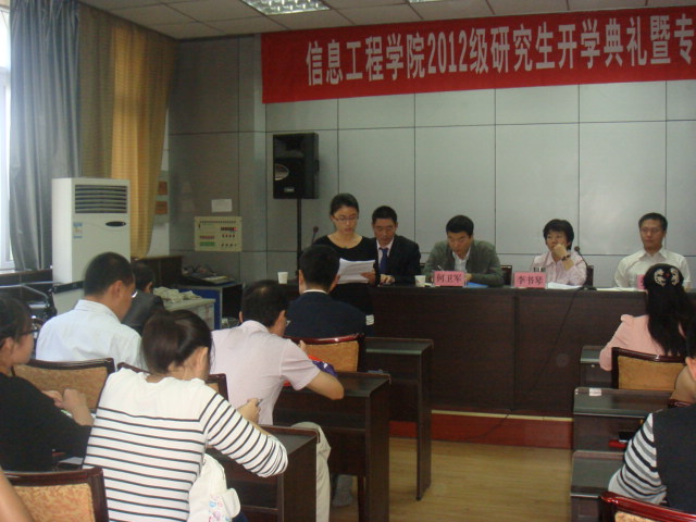 在二楼多功能厅隆重召开“2012级研究生开学典礼暨入学教育大会”,学院领导、研究生导师出席了会议,全体研究生参加了会议,会议由副院长来智勇教授主持。