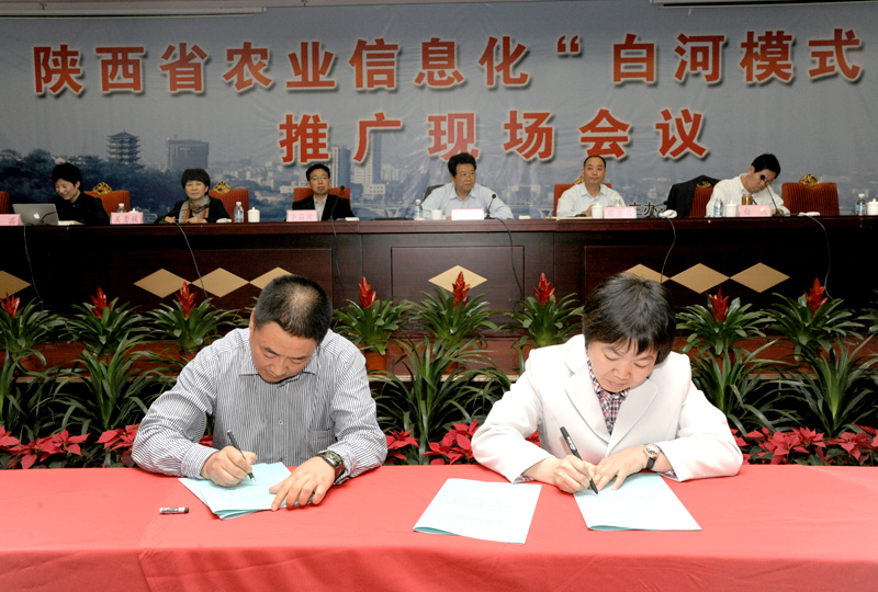 院长李书琴和张阳副院长参加了会议。会议期间,赴白河县参观了县农业综合信息中心、县网络医疗会诊中心以及茅坪镇金花村、枣树村农村综合信息服务站,现场参观学习白河县在农业农村信息化中的好经验、好做法。在随后召开的全省农业信息化会议上,学院与陕西省农业宣传信息中心签定了《关于推进陕西农业农村信息化建设框架协议》。