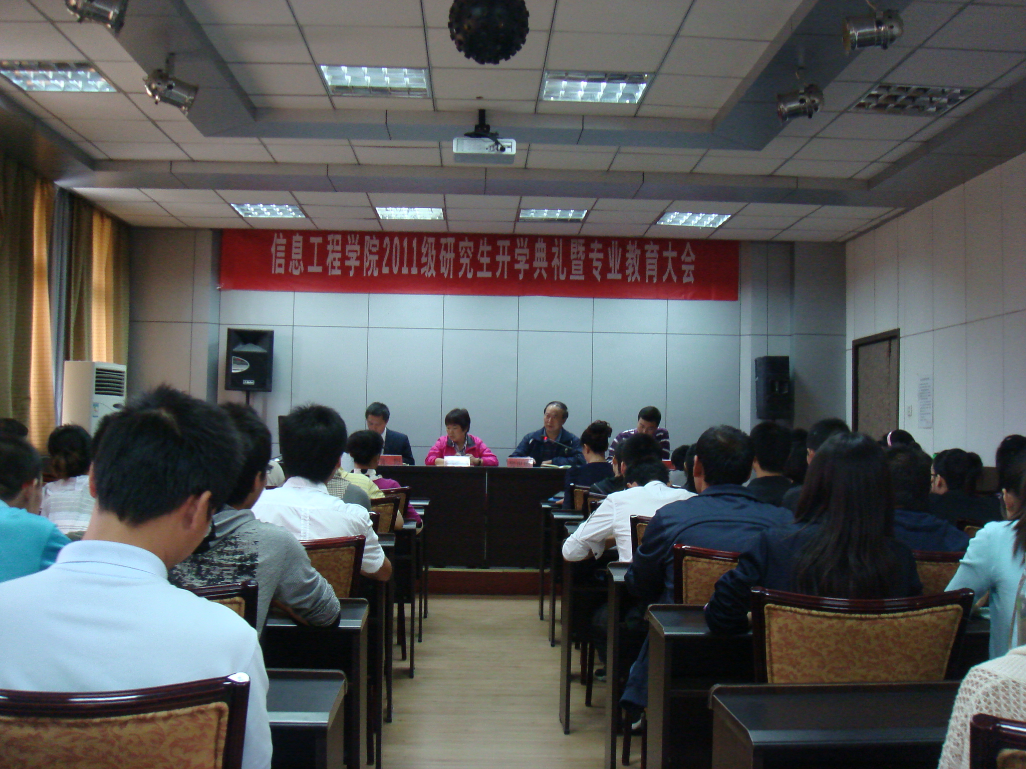 在二楼多功能厅隆重召开“2011级研究生开学典礼暨入学教育大会”,学院领导、研究生导师出席了会议,全体研究生参加了会议,会议由副院长张阳教授主持。