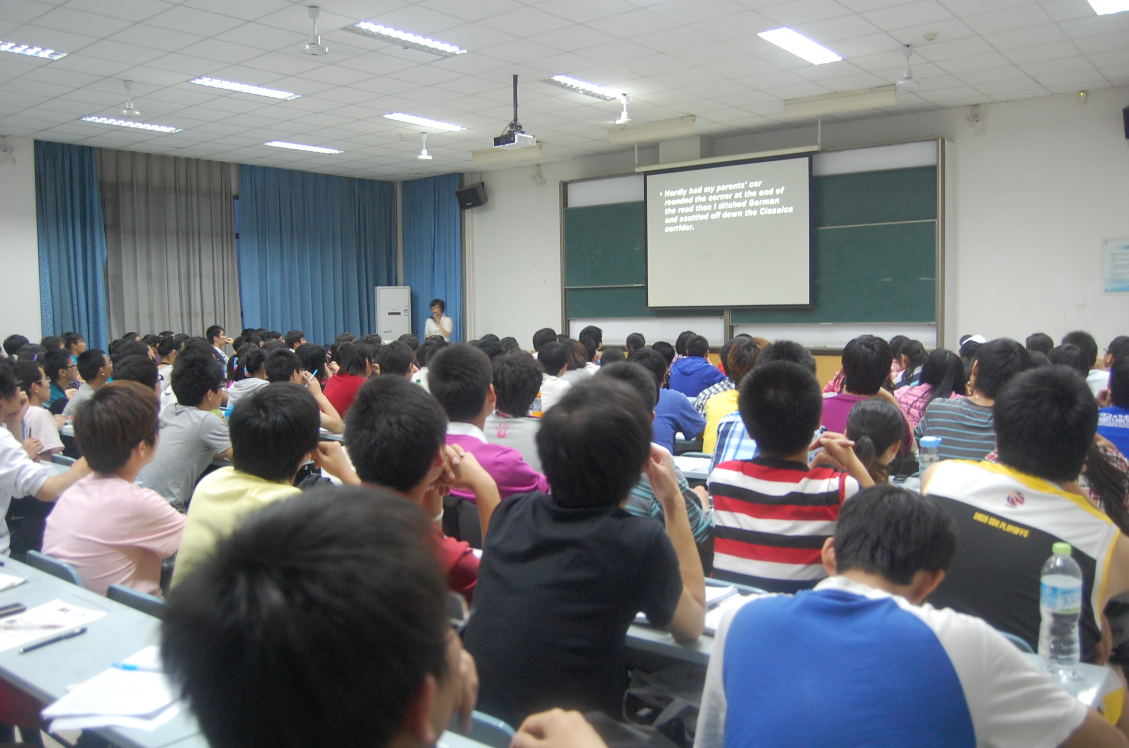 200余名学生在计算机教学中心多媒体教室进行了第一次课。本次辅导,同学们热情高涨,教室内座无虚席。在该次辅导课上,外语系两位老师用幽默诙谐的言语成功调动了学生的积极性,活跃了全场气氛。