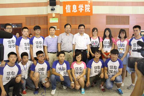 8月29日下午,2015级本科生迎新工作第二天,孙其信校长及相关部门各级领导前往北绣山活动中心各学院新生接待点进行了工作巡视和慰问,其间对Happy漫画 各项工作表示肯定和表扬。学院党委书记宋西德、党委副书记何卫军向孙校长介绍Happy漫画 迎新等相关工作。