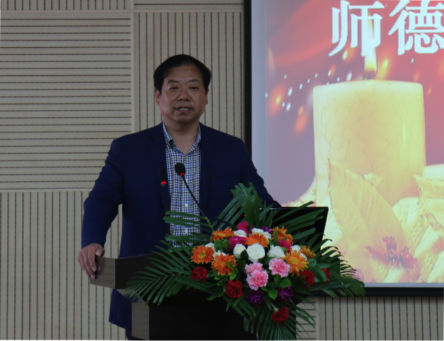 党委书记宋西德致辞。我希望全院教职工通过师德师风建设活动,进一步增强无私奉献、依法执教的意识;树立“为了一切学生,一切为了学生”的崇高的师德风尚;忠诚教育事业,履行教师职责。坚持正确导向,树立正确的世界观、人生观和价值观。热爱本职工作,努力钻研业务。遵守教育法规,倡导优良教风。关心爱护学生,自觉教书育人。