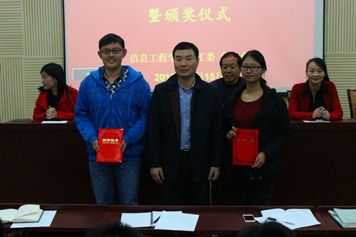在颁奖环节,首先,何卫军副书记为各球队队长颁发了证书,接着,主持人宣读了获奖名单,最后,由院领导为获奖同学颁发个人奖项,并合影留念。每位同学登上领奖台时,皆步伐有力,神采飞扬,毫不减比赛时的热情。诚,朴,勇,毅,信工学子的信条,在他们的身上,得以完美的诠释。