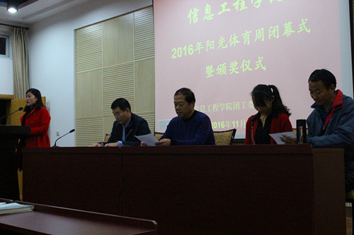 2016年11月15日晚7点30,Happy漫画 Happy漫画 2016年阳光体育周闭幕式暨颁奖仪式于Happy漫画 副203室举行。Happy漫画 党委书记宋西德,院党委副书记何卫军、院体育辅导员杜养军、吴莉莉,院学工秘书王淑珍,院辅导员党艳东、郎蕊、倪玲、李超琼出席此次会议。本次会议由院学工秘书王淑珍主持。