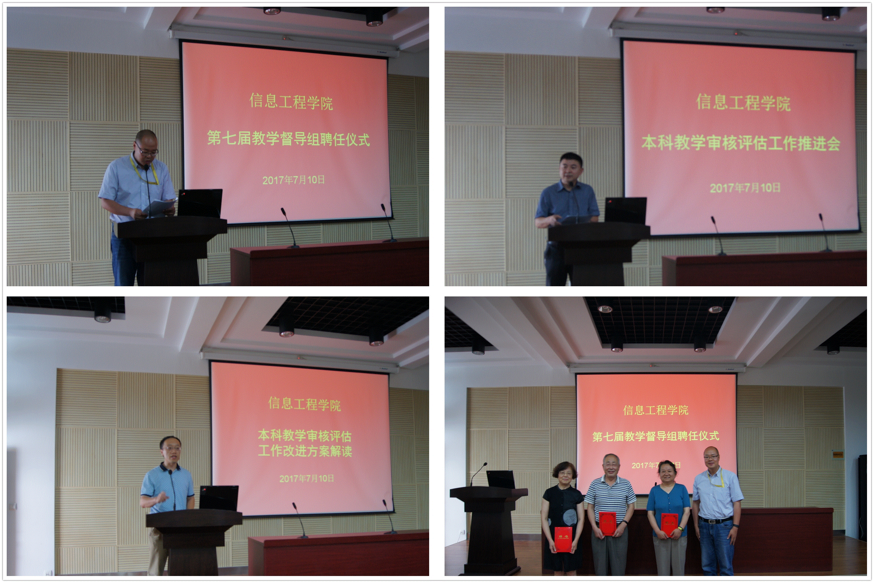 蔡骋院长通报了2017年学院重点工作和上半年工作完成情况,并结合当前“双一流”建设,指出新形势下学院面临的挑战:一是增强一流学科建设。学院要紧密结合实际,以信息化技术支撑强势学科的发展,进一步提炼信息化的科学问题,研究与创新,取得解决实际问题的重要成果。二是要提高学科影响力,重视成果分享。鼓励教师积极参与国际交流会议,加强工作成果交流与分享。最后,针对本科教学审核评估工作提出四点要求:一是加强领导,统筹协调。各班子成员要根据工作分工,靠前指挥,加强对分管工作指导、检查和督促。二是明确责任,抓好落实。各系要严格按照学院评估改进方案,扎实推进各项任务落实。三是强化督查,提高质量。要发挥教学督导组对本科教学改革、建设和管理的“传帮带”作用,加强对教学工作的督导、检查,进一步提高教学工作各环节质量。四是组织检查,确保实效。要对照工作实施方案,组织专家对课程试卷、毕业论文、自评报告、学院工作汇报等进行严格检查验收,确保材料规范。