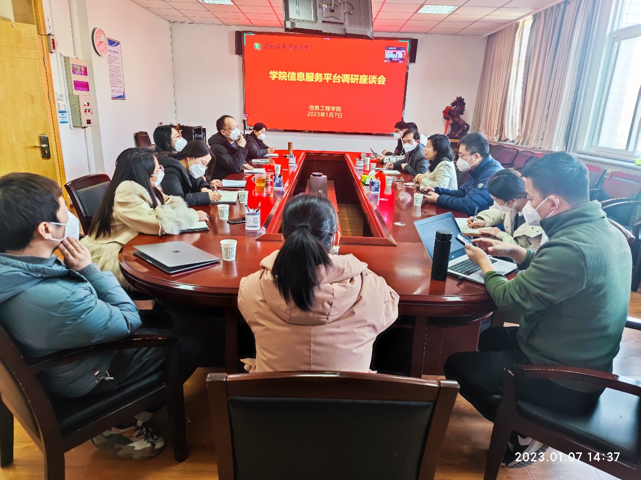王晓娟、王西军简要介绍了学校信息化战略调研情况、一网通办、部门一张表和学院信息服务平台(教师一张表)建设的背景、目标及进展情况。雷天奇老师详细介绍了学院信息服务平台建设背景、工作进展,并以学院绩效工资计算为例作了使用介绍。