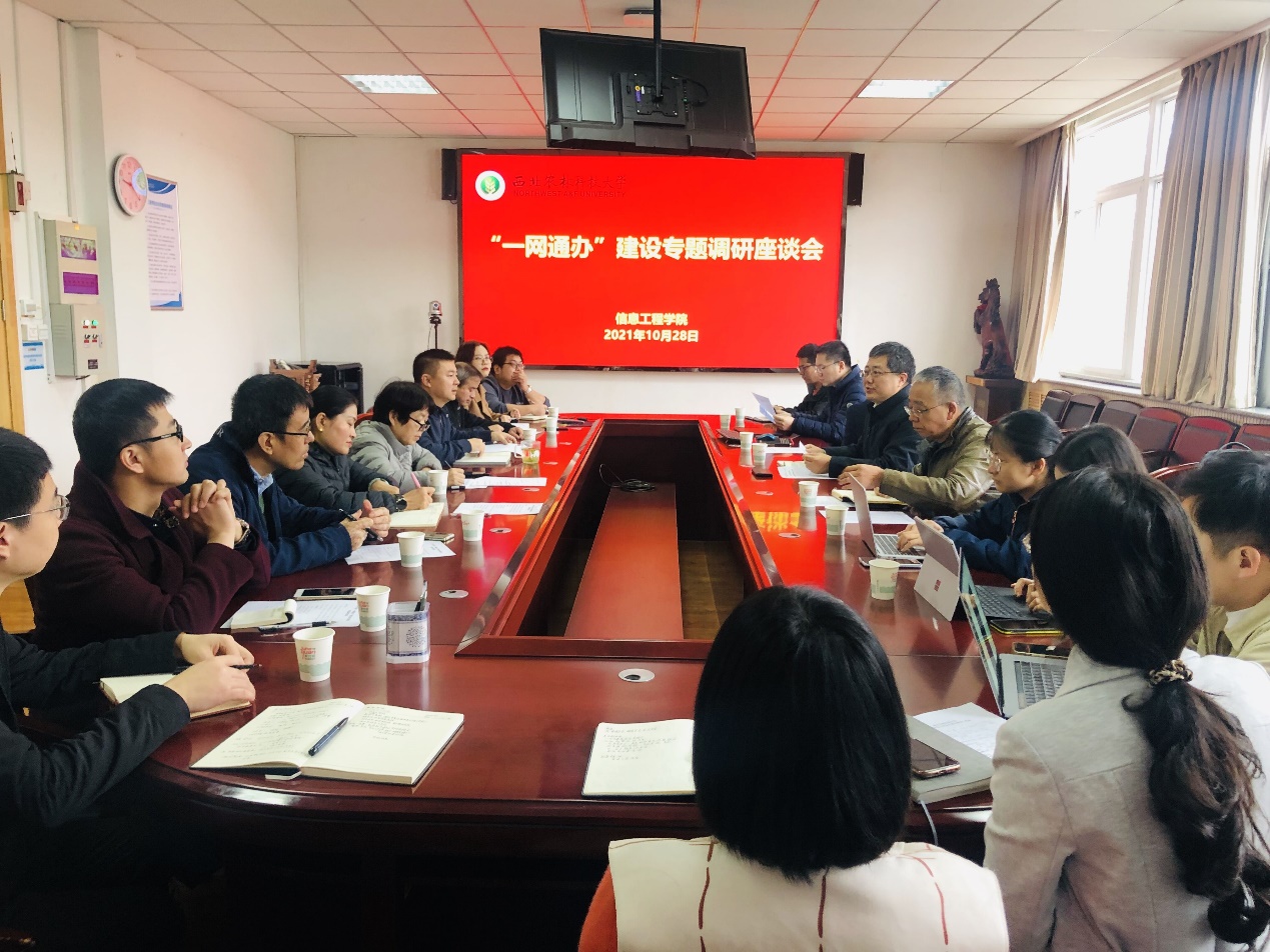 10月28日上午,罗军副校长带领信息化管理处韩苏建处长一行8人来院调研“一网通办”“一张表”和学生综测信息化建设等,学院党委书记党青、副书记刘桂玲、副院长黄铝文及教师代表、办公室科级干部14人参加座谈。