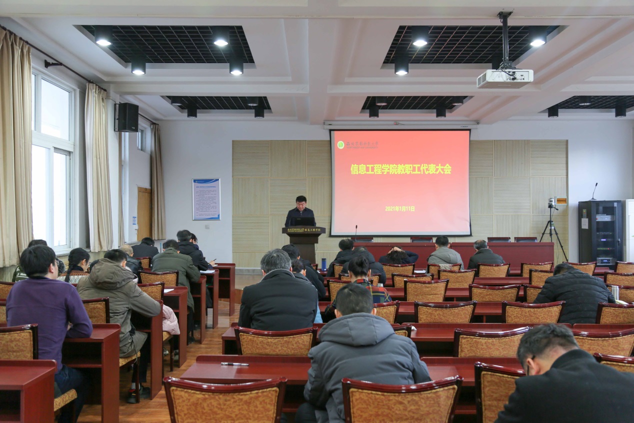 在副203会议室召开了教职工代表大会(扩大)会议,对领导班子及班子成员进行民主测评,审议通过了学院《2020年津贴分配办法》《2020年工作报告》《2020年财务报告》,学院班子成员、教授委员会委员、系(部、室)主任及秘书、党委(党总支)委员、党支部书记和委员、教代会代表、科级干部、党员代表等参加会议。