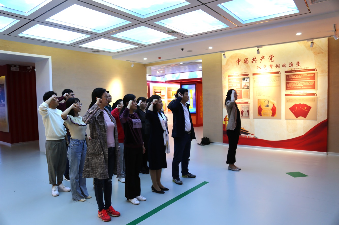 参观最后,全体党员在鲜艳的党旗下,重温入党誓词,进一步增强了党员的光荣感、责任感、使命感,勉励大家不忘初心,牢记使命,廉洁自律,在本职工作岗位上发挥党员先锋模范作用,为学院事业发展贡献力量。