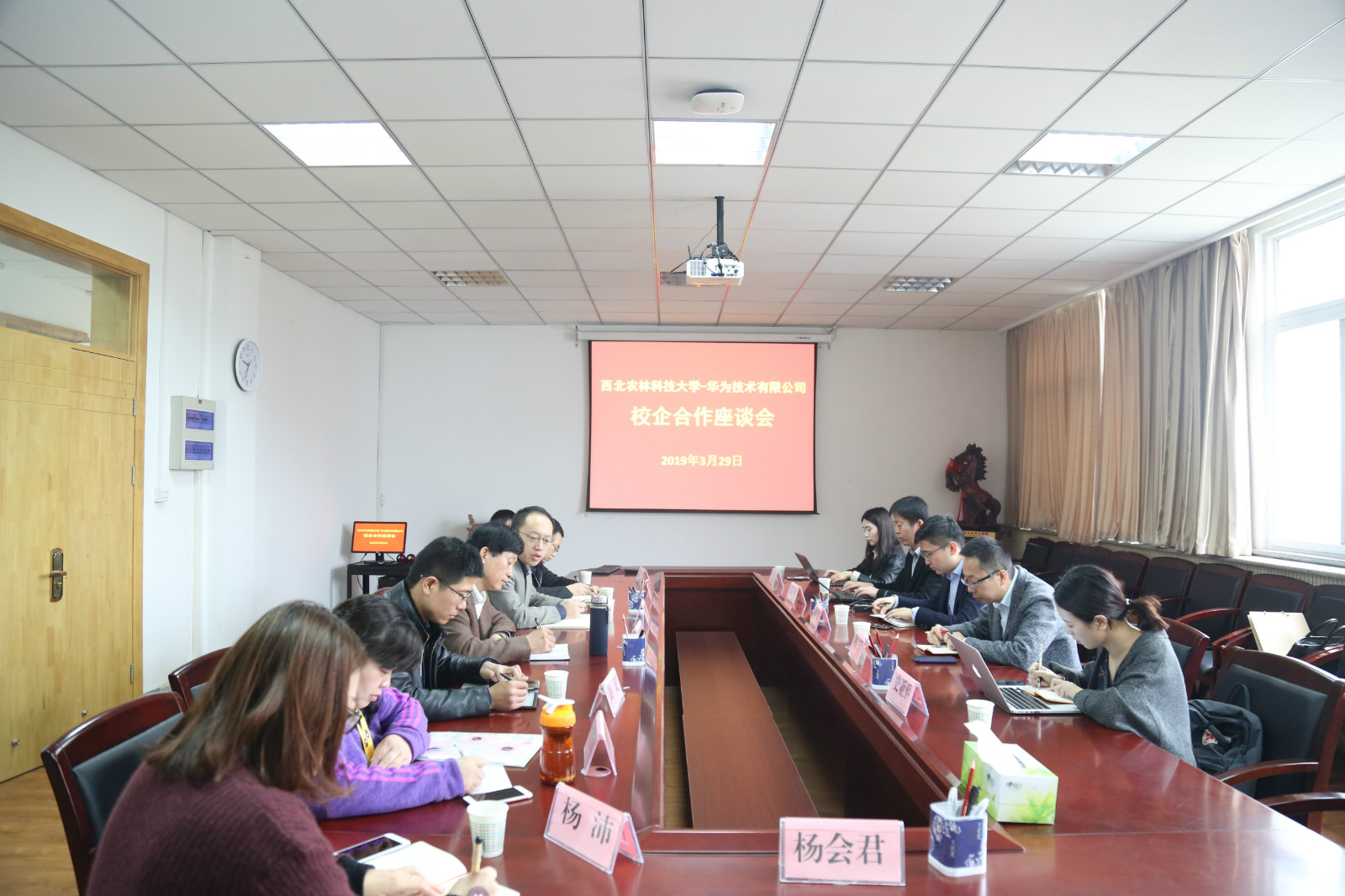 3月29日上午,华为云西北区教育行业总监文斌一行5人再次来访Happy漫画 ,双方就人才培养深度合作开展洽谈,洽谈会由学院副院长张宏鸣主持。学院副院长胡少军和相关专业教师参加洽谈会。