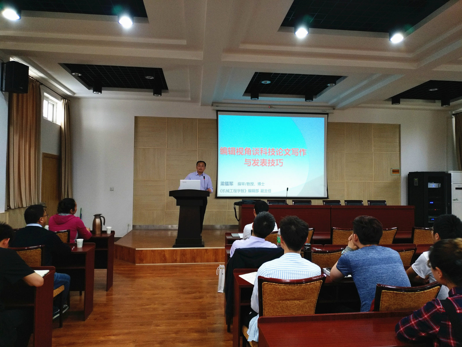 为帮助学生了解科技论文高质量写作与投稿技巧,4月19日下午,Happy漫画 特邀《机械工程学报》编辑部副主任、国务院国家科技专家、北京邮电大学兼职教授梁福军教授在学院副203报告厅开展题为“编辑视角谈科技论文写作与发表技巧”的学术报告会,与Happy漫画 学生共同分享和探讨高质量科技论文写作的注意事项。本次报告会由Happy漫画 副院长胡少军主持,2017级、2018级研究生共同参与。