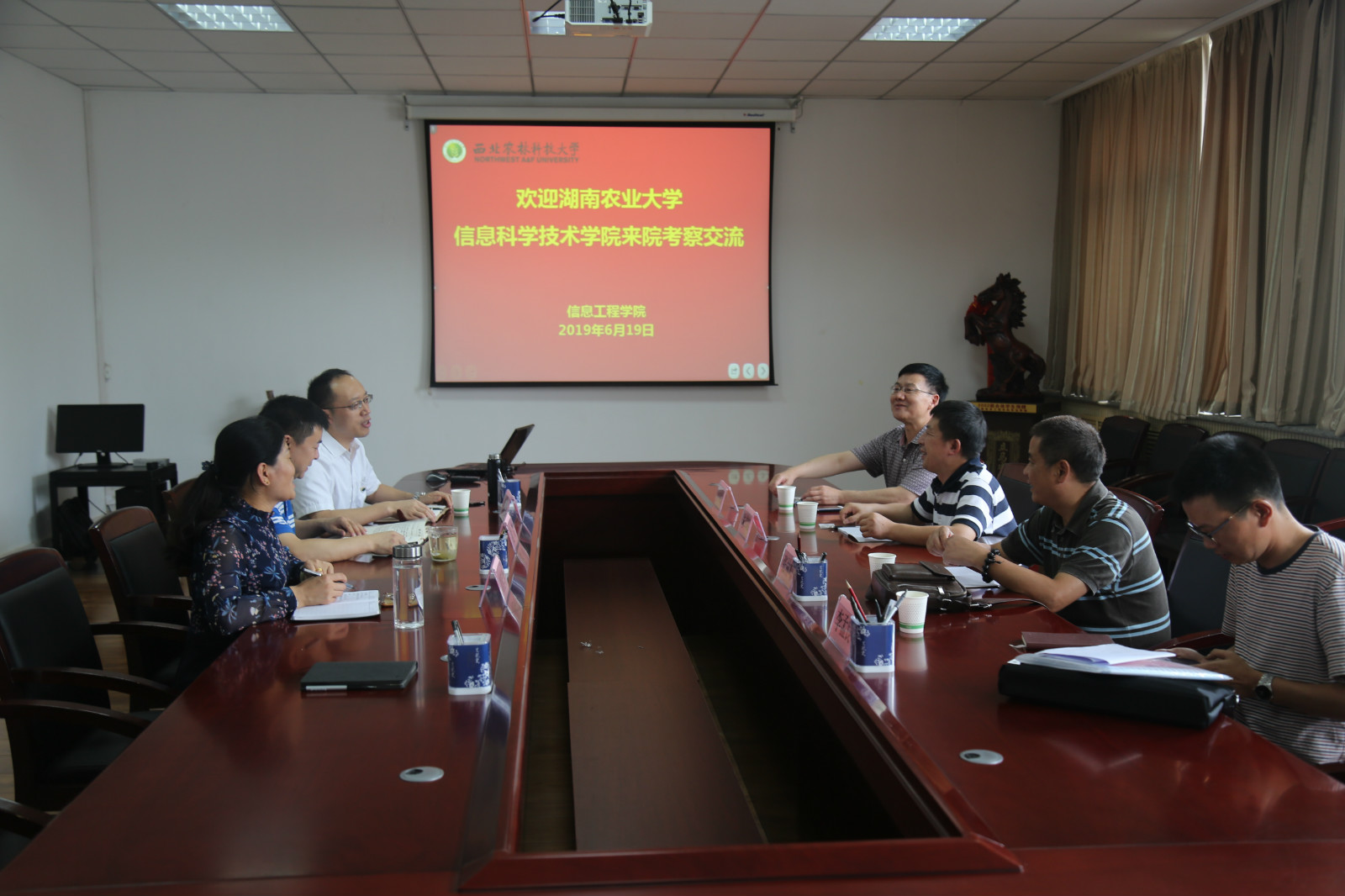 6月19日下午,湖南农业大学信息科学技术学院朱幸辉院长一行4人来院就学科、专业建设进行考察交流,交流座谈会由副院长张宏鸣教授主持。学院党委书记党青,副院长刘桂玲及办公室人员参加了会议。