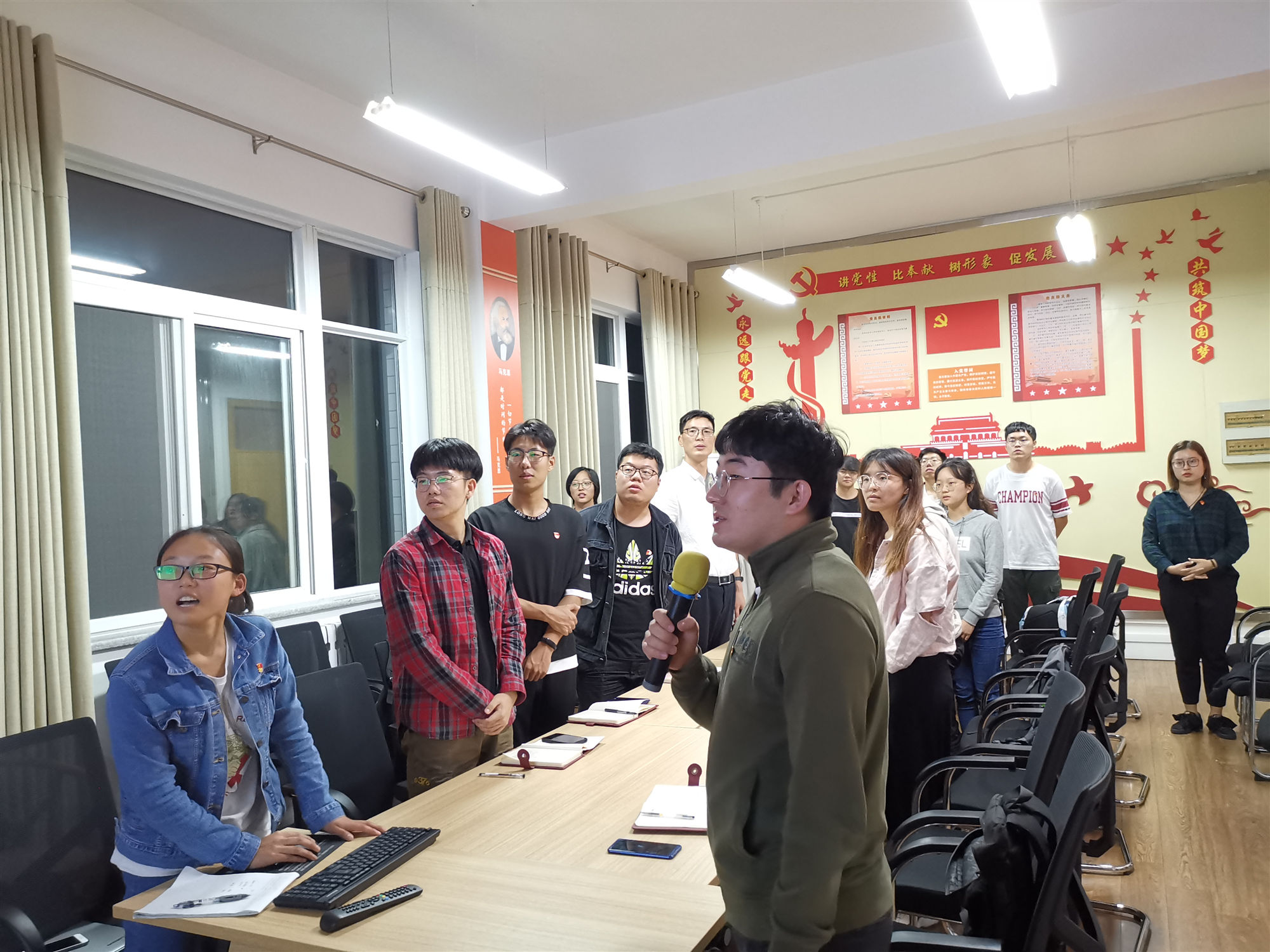 组织生活会临近尾声,由预备党员李伯驹领唱,支部同志一起为祖国献唱《我和我的祖国》,在歌声中为祖国70周年华诞祝福,大家心潮澎湃,脑海中久久不能消去歌曲的回响。