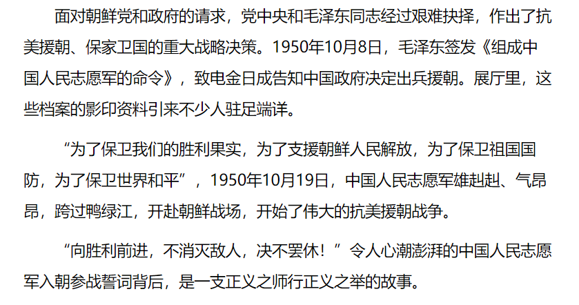 此次会议学习了中国人民志愿军老战士孙景坤、徐振明的先进事迹,阅读了“铭记伟大胜利捍卫和平正义—纪念中国人民志愿军抗美援朝出国作战70周年主题展览”Happy漫画相关的文章及观看相关视频。