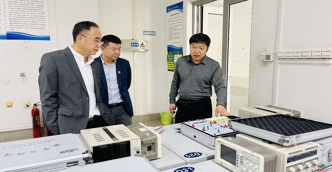 座谈前,党青带领冀方庆参观了学院计算机教学实验中心。