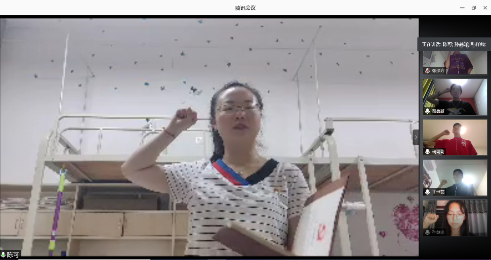计算机1802班张译方同志分享了其奶奶的故事,其奶奶是一名入党50多年的老党员,在村民还不重视疫情时,奶奶就挨家挨户发放疫情宣传单,广播每天的疫情情况,家人寄来的防控物资中九成都无偿分给了村民,这50多年来,只要人民需要她,她就会义无反顾去做,这也是张译方同学的初心,希望自己的一举一动能够影响、帮助到别人。