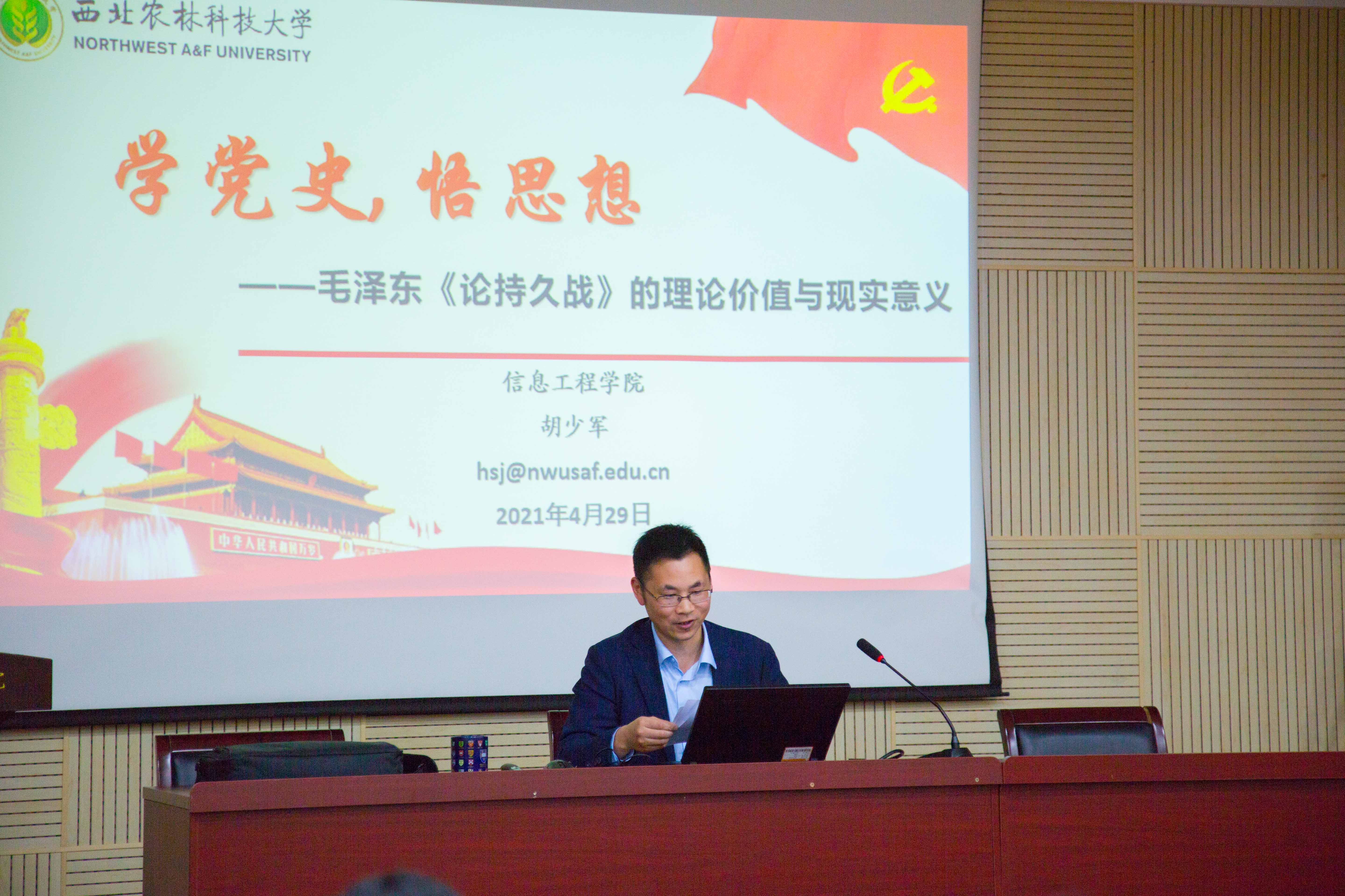 4月29日,学院副院长胡少军以《学党史,悟思想——毛泽东<论持久战>的理论价值与现实意义》为题,在学院副203会议室为学生党员讲述专题党课。