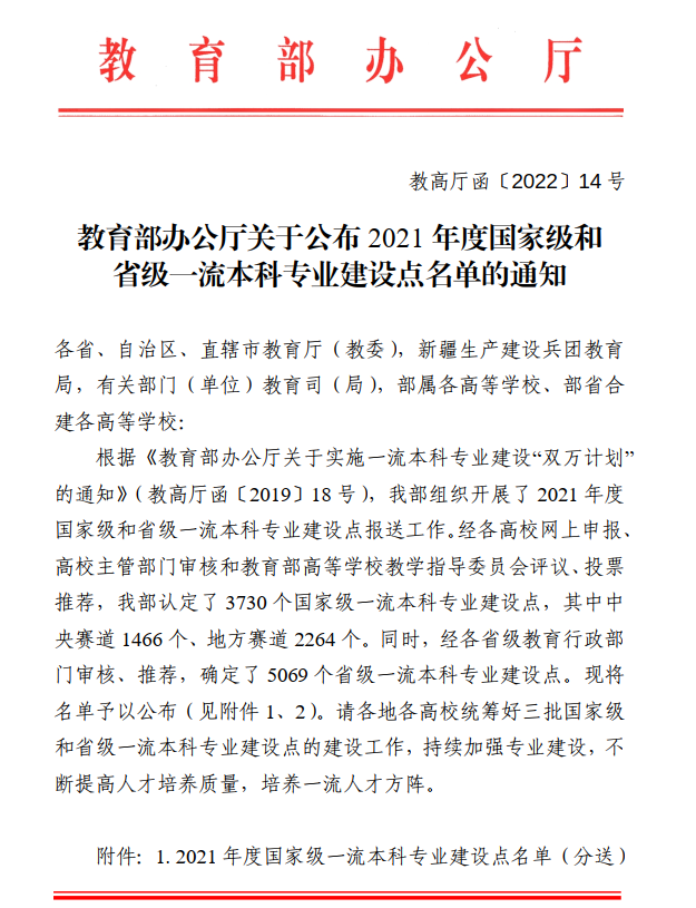 近日,教育部办公厅印发了《关于公布2021年度国家级和省级一流本科专业建设点名单的通知》(教高厅函﹝2022﹞14号),正式公布了2021年度一流本科专业建设“双万计划”建设点名单。Happy漫画 软件工程专业入选国家级一流本科专业建设点,实现了国家级一流本科专业零的突破。