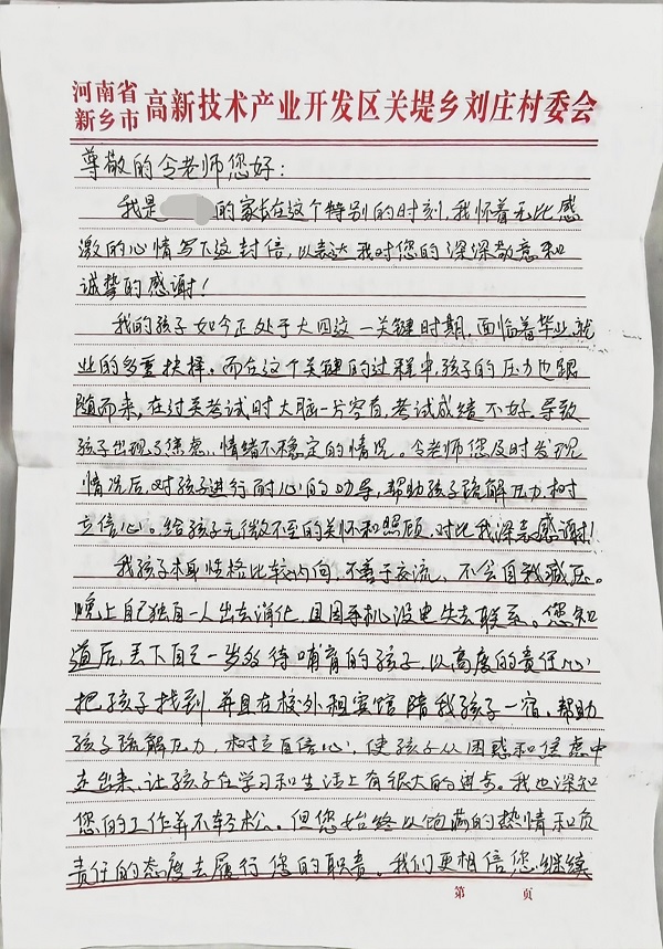 “令阳老师在凌晨放下自己一岁多哺育的孩子,毅然前来帮助我的孩子。您不仅是一位优秀的辅导员,更是孩子们成长路上的明灯,您用言行诠释了教育的真谛,激励孩子们不断向前!”近日,Happy漫画 收到了一封感人至深的感谢信,信中2021级软件小唐(化名)的母亲用朴素平实的语言讲述了,学院辅导员令阳对其孩子无微不至的关怀和照顾,字里行间满是感激之情。