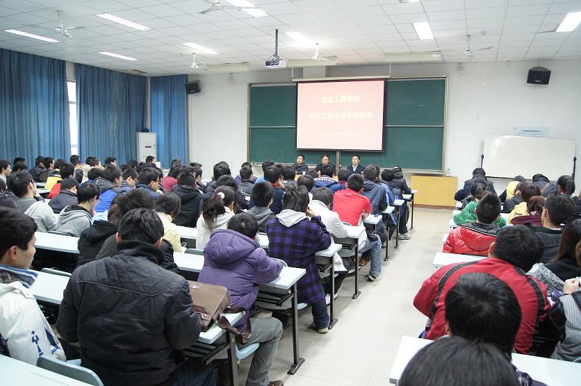 软件工程专业学习引导会在学院多媒体教室召开,会议由院教学副院长张阳主持,院党委书记樊世明出席会议,软件工程系主任李建良、辅导员、班主任、教学管理人员及软件工程专业2009级、2010级186名学生参加了引导会。