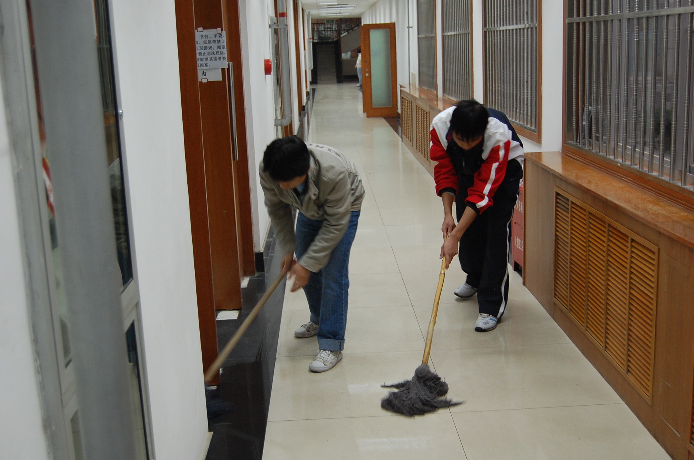 北校区图书馆,进行义务大扫除。此次义务服务是继农高会义务宣传活动之后又一次活动。