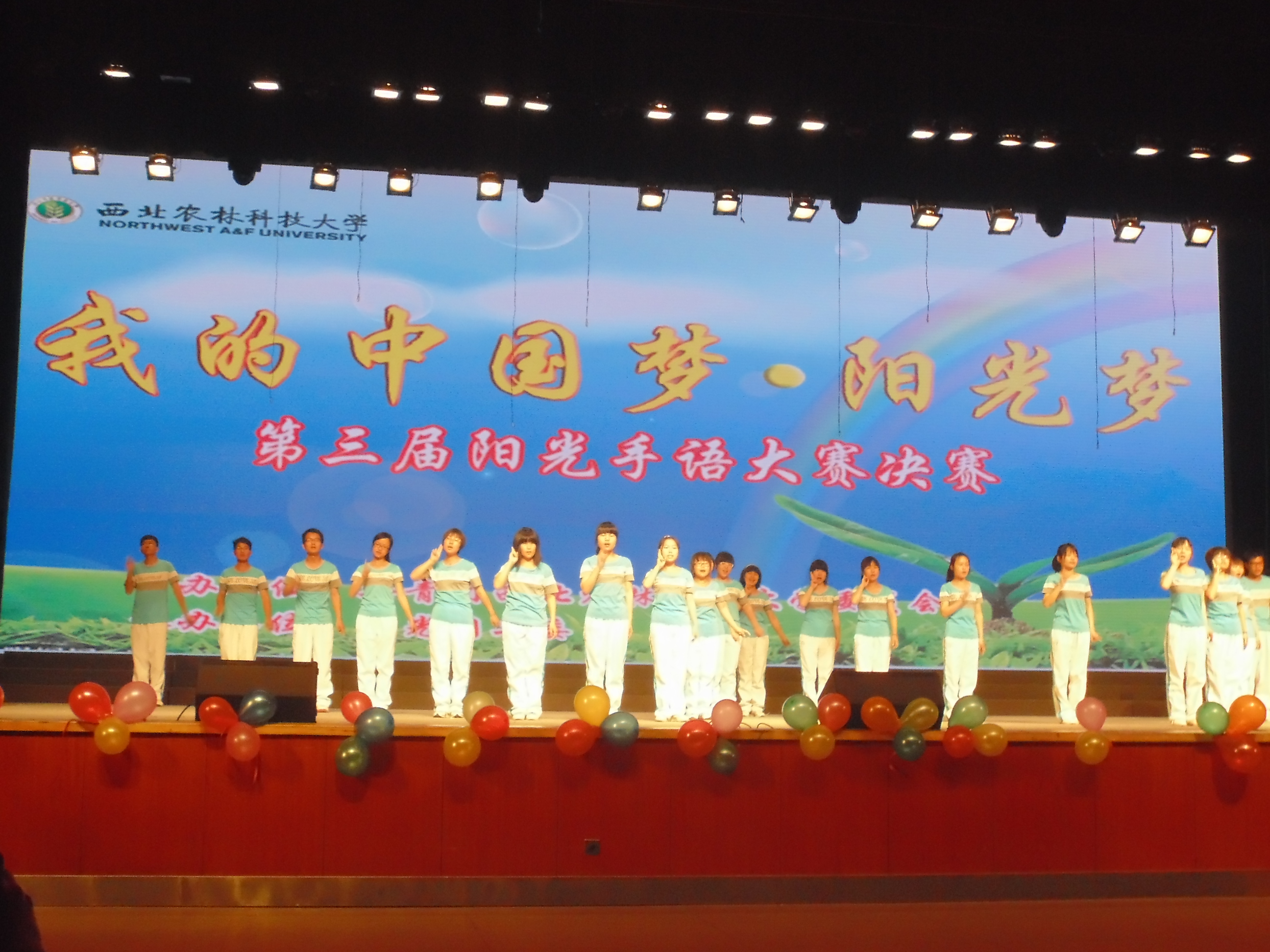 5月4日晚19:30,以“我的中国梦.阳光梦”为主题的西北农林科技大学第三届阳光手语操大赛决赛在北校绣山活动中心举行。Happy漫画 阳光团工委在大赛中表现优异,最终获得优秀奖。