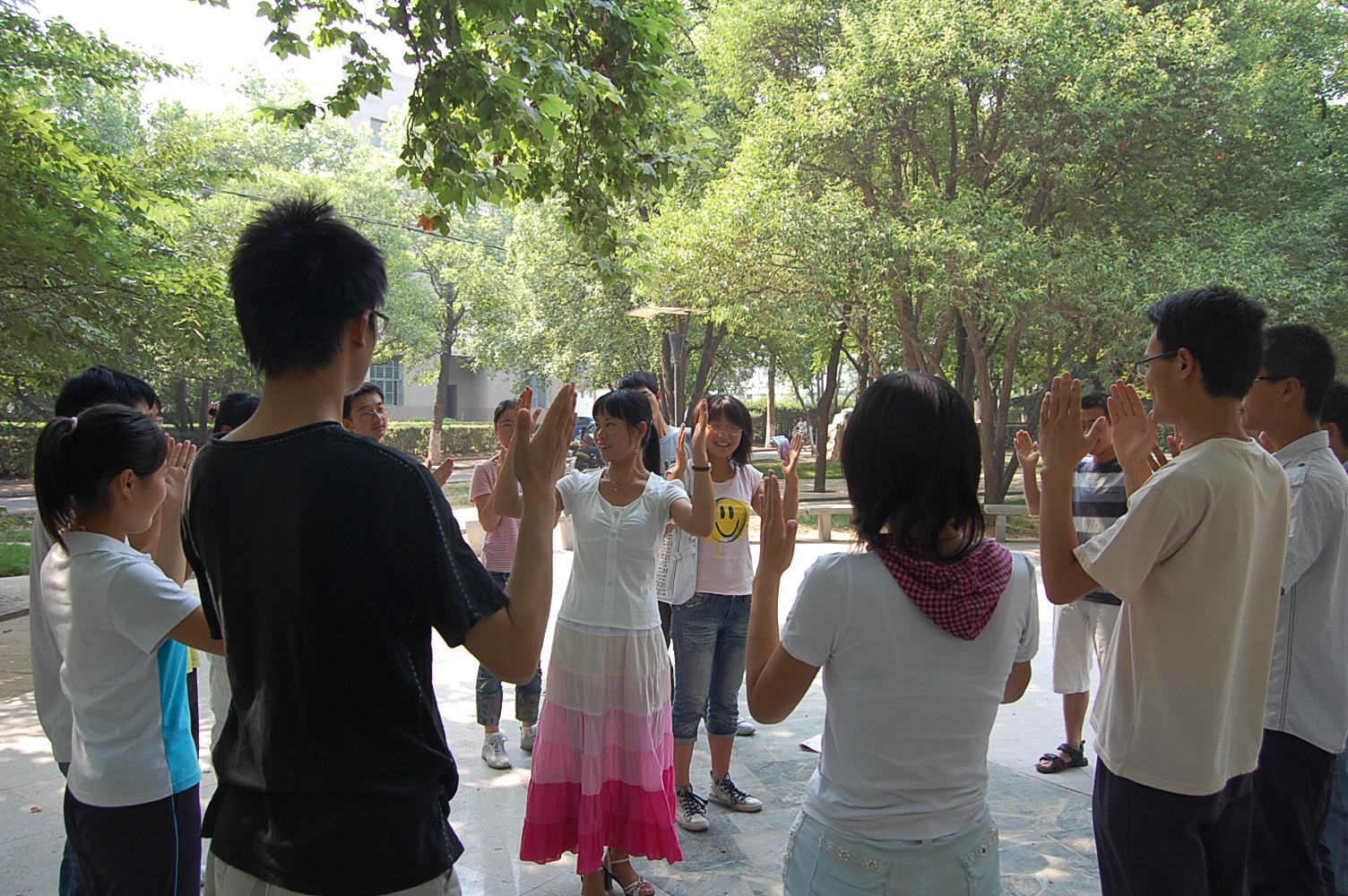 举办了心理辅导实验班以后,6月5号下午人文学院武春芳老师又应邀在三号教学楼前举行了一次以“团结一致”为主题的心理辅导,此次辅导同样以户外活动的方式举行,意在让大家在灾后团结一致、众志成城、共渡难关。