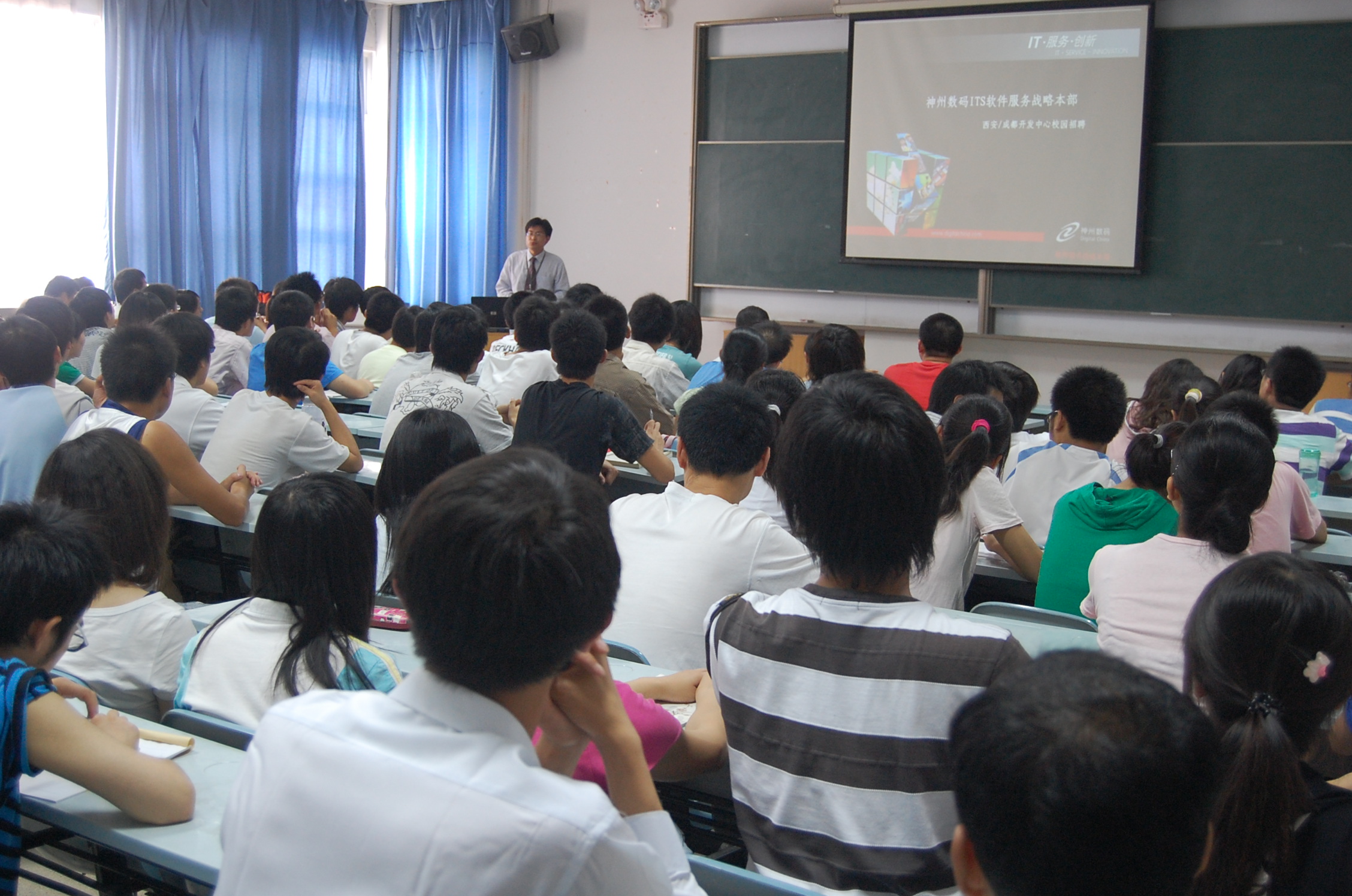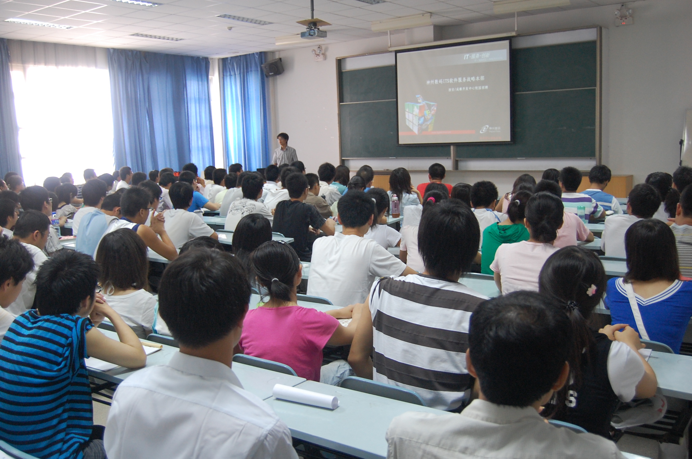 学生提供了大量的实习岗位并录用了很多优秀实习生,仅05级就录用了13名本科生和2名研究生,月薪都在3000元以上。因此,何书记希望同学们能把握住这次实习机会,争取毕业时能成为该公司的正式员工。随后,汪少祥经理向大家介绍了公司的规模、岗位设置、职业发展以及实习内容等;折沂经理介绍了此次招聘的流程,她表示公司将为所有实习生提供免费培训并发放一定生活补助,表现优异的学员在毕业时将直接与公司签订三方协议和劳动合同。最后,05级部分进入神州数码工作的同学与全体同学一起进行了交流。