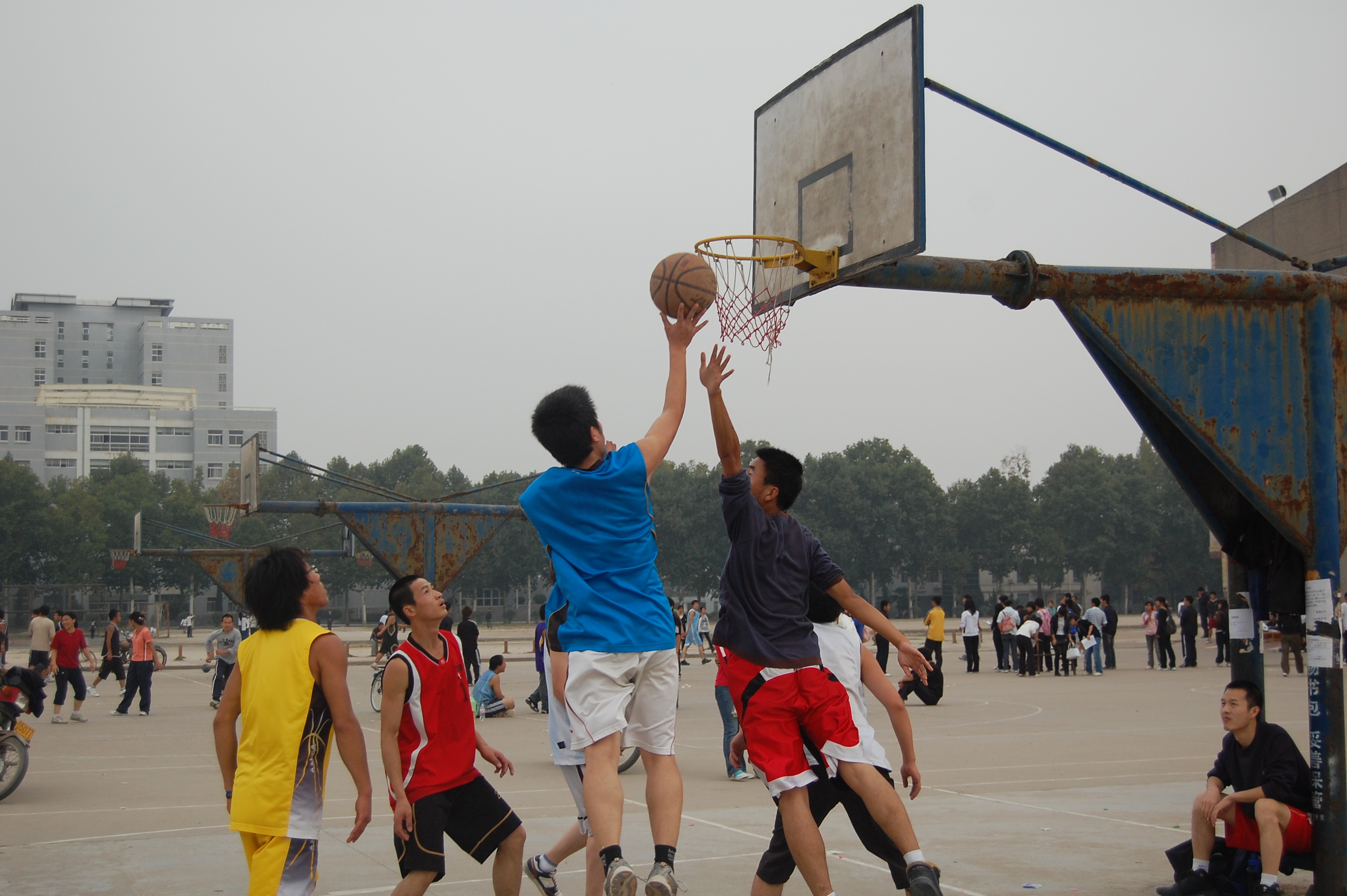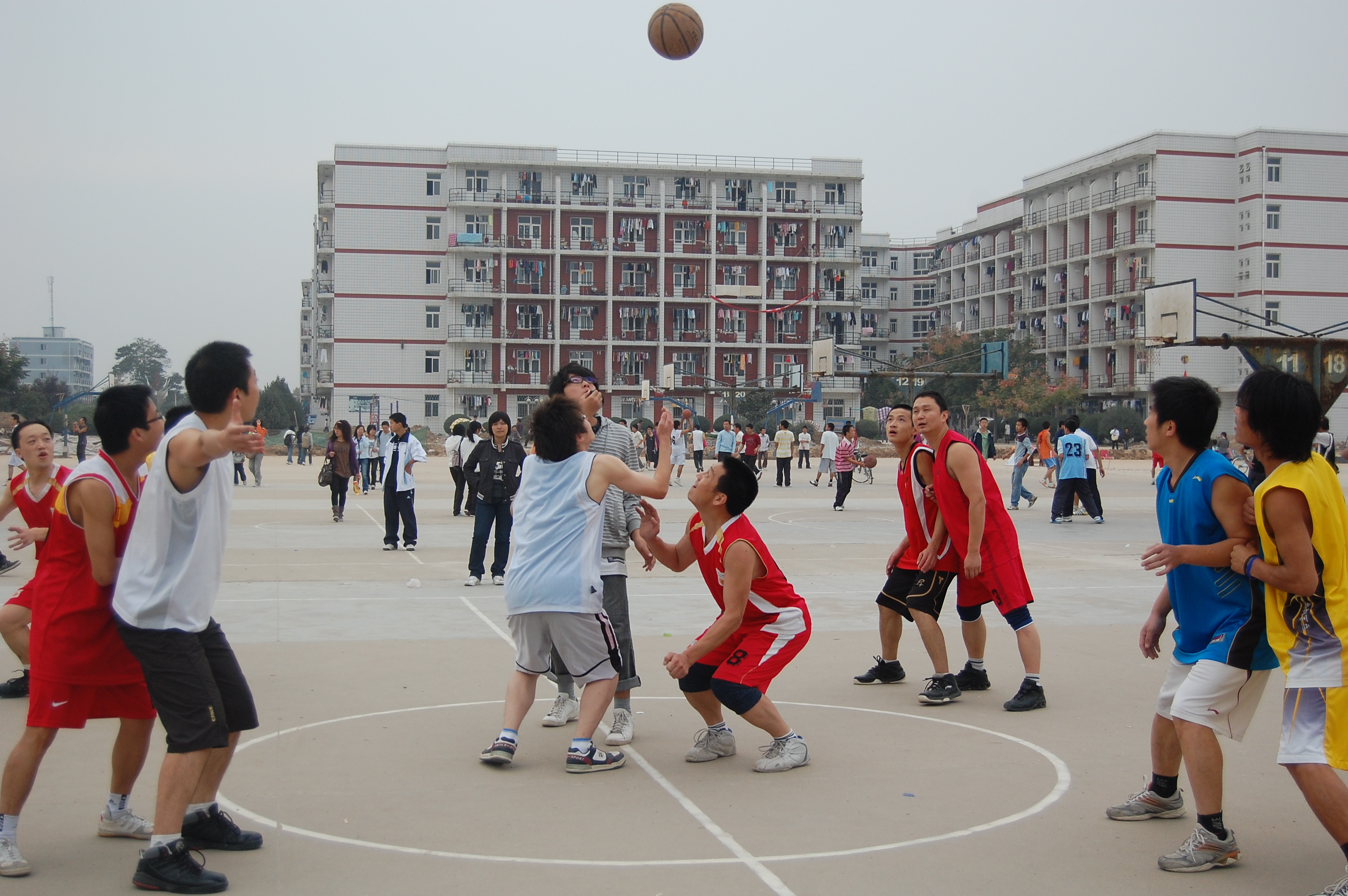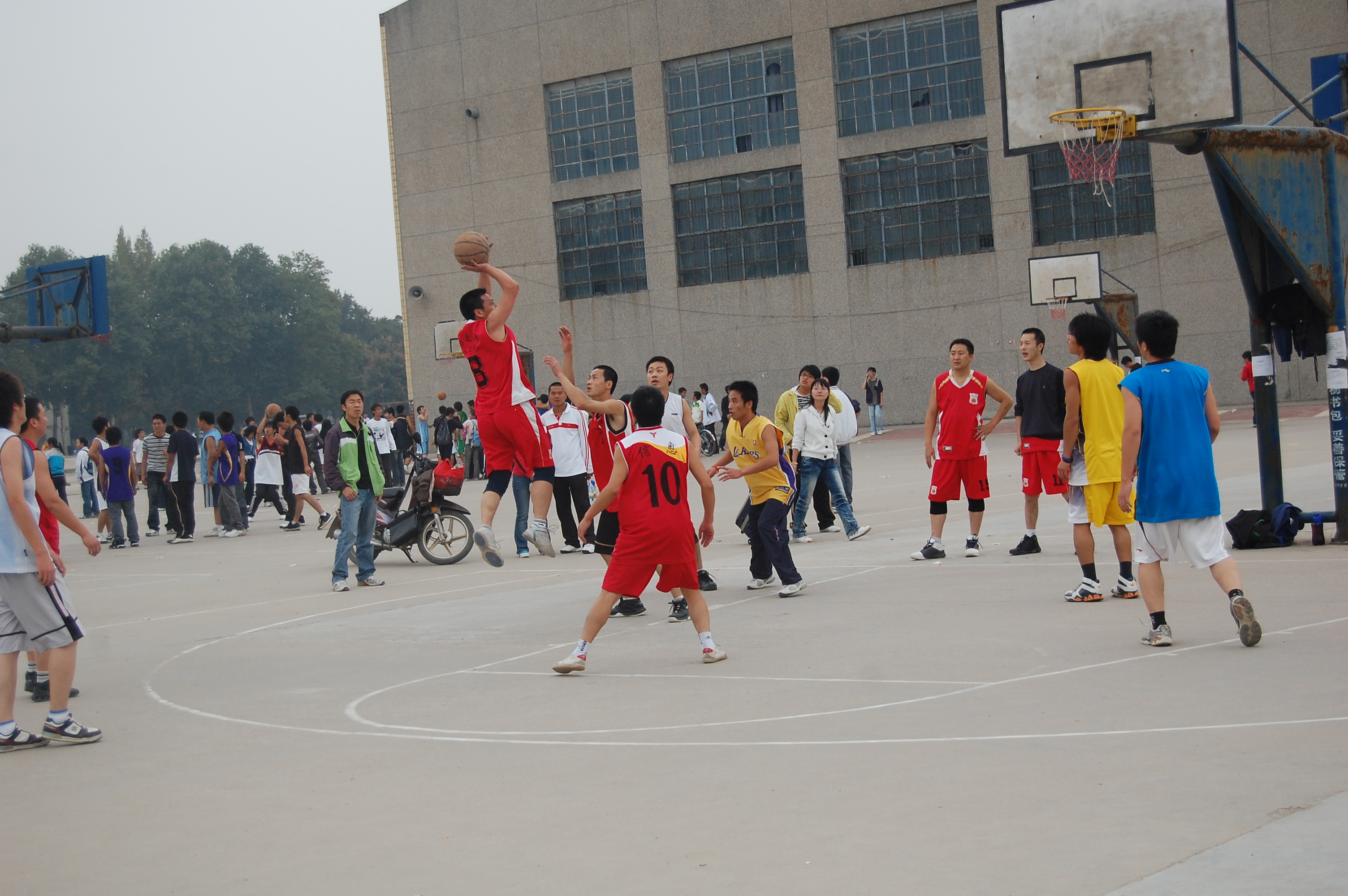 教职工组与学生组的友谊篮球赛于北校区篮球场举行,精彩的比赛吸引了众多同学前去观赛。