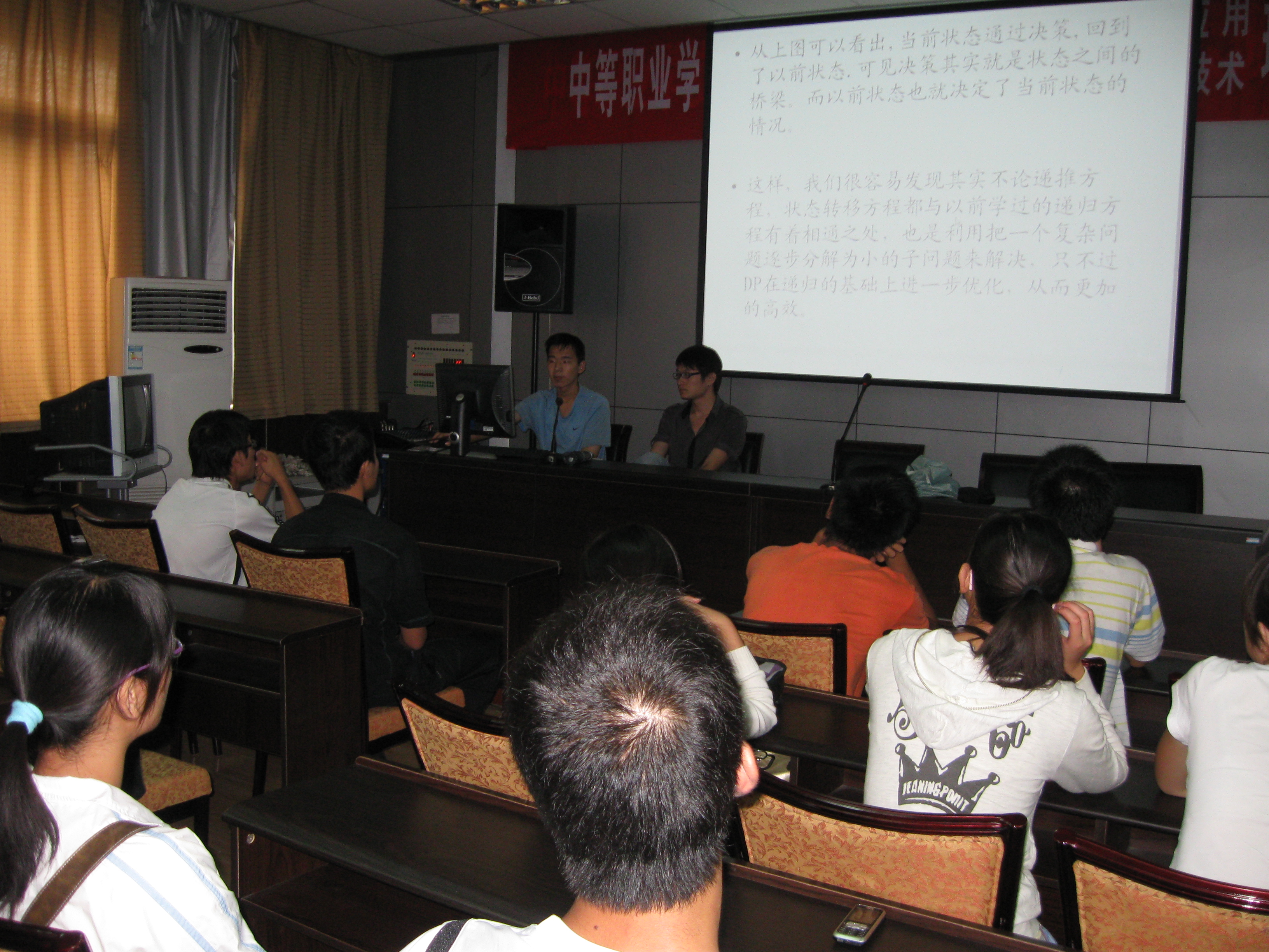 Share 主要在于经验的交流、知识的共享,本着提高队伍整体水平的目的。暑期集训期间,队员们每周进行一次讨论,将自己做过题目的解题思路以报告的形式展示出来,供其他队员学习提高。