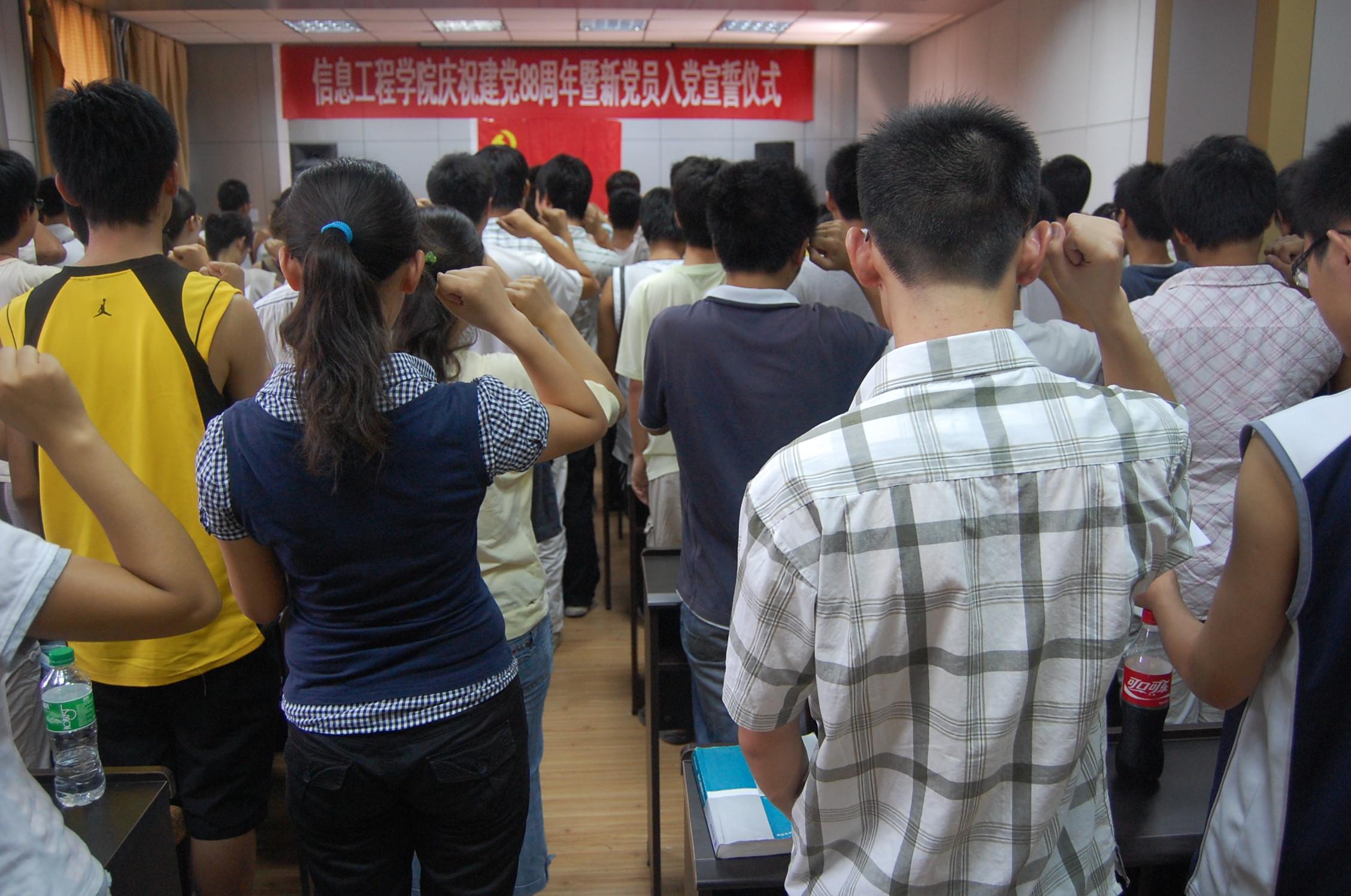 7月1日下午,在中国共产党建党88周年之际,Happy漫画 “庆祝建党88周年暨新党员入党宣誓仪式”在学院二楼会议室隆重举行。学院党委副书记何卫军和110多名新党员参加了会议。会议由办公室主任刘桂玲主持。